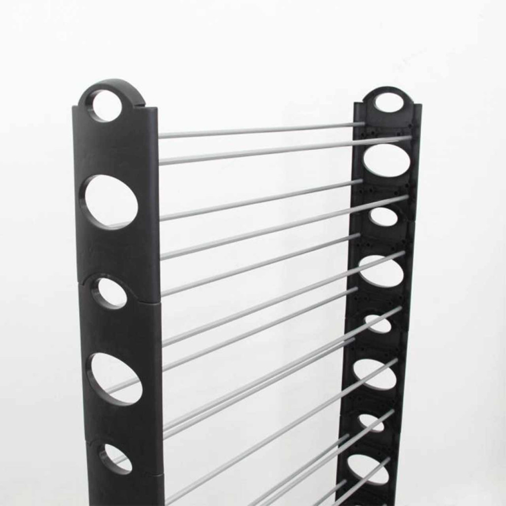 10-soros cipőpolc, műanyag+fém, szürke/fekete, BOTIS 4 TÍPUS