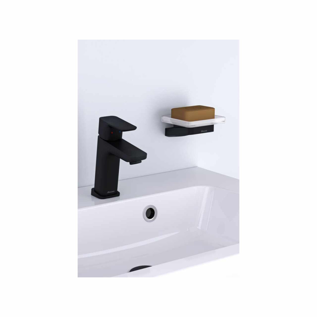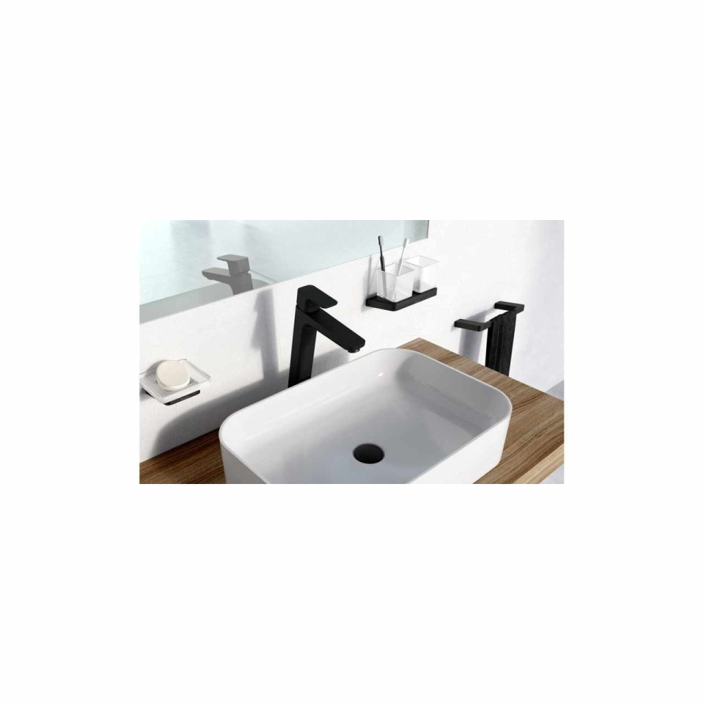 Fogkefetartó szappantartóval 10°. Fekete kivitelben, matt üveggel.