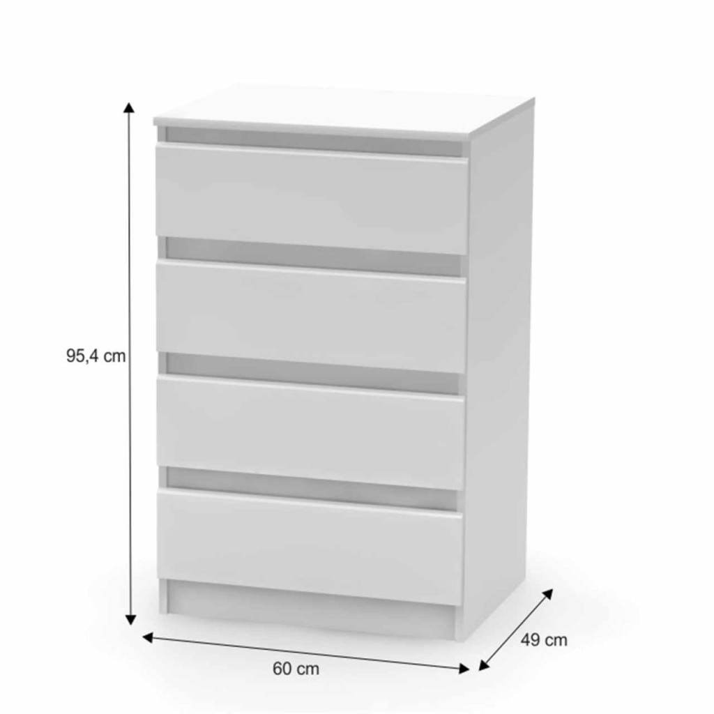 4 fiókos komód HANY NEW 014 Anyag: laminált DTD Színe: fehér Méretek (SzéxMéxMa): 60x49x95,4 cm Minőségi szlovák termék. ABS élek Szállítás szétszerelve.