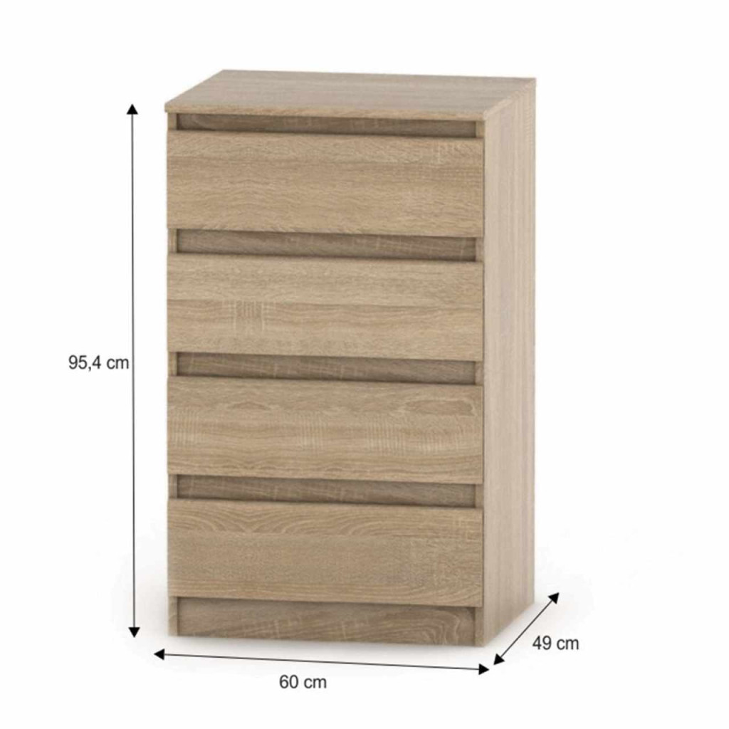 4 fiókos komód, tölgy sonoma, HANY NEW 014
