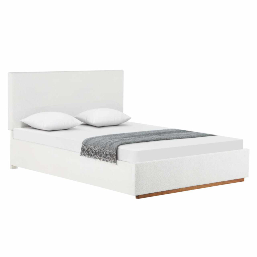 Anyag: Bouclé szövet/MDF/rétegelt lemez/fémA szövet kopásállósága a Martindale teszt szerint: 10 000 kopásSzín: fehérMéretek (SzxMéxMa): 172x215x118 cmFekvőfelület (SzxHo): 160x200 cmMagasság a rácsig: 33 cmTeherbírás/fekvőhely: 110 kgMagas homlokrészHomlokrész magassága: 31 cmLábvég magassága: 118 cmAz alsó fa rész magassága: 4 cmTárhellyelA tárolórésznek nincs szilárd alja, az alsó rész szövettel van lefedveLéces, felnyitható ágyráccsal szállítvaLécek közötti távolság: 5,5 cmGázrugókMatrac nélkül szállítvaMatracok külön megvásárolhatók kínálatunkbólAjánlott matracmagasság: 20 cmMatrac besüllyesztése: 2 cmElegáns dizájnSzétszerelve szállítva