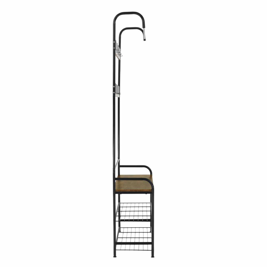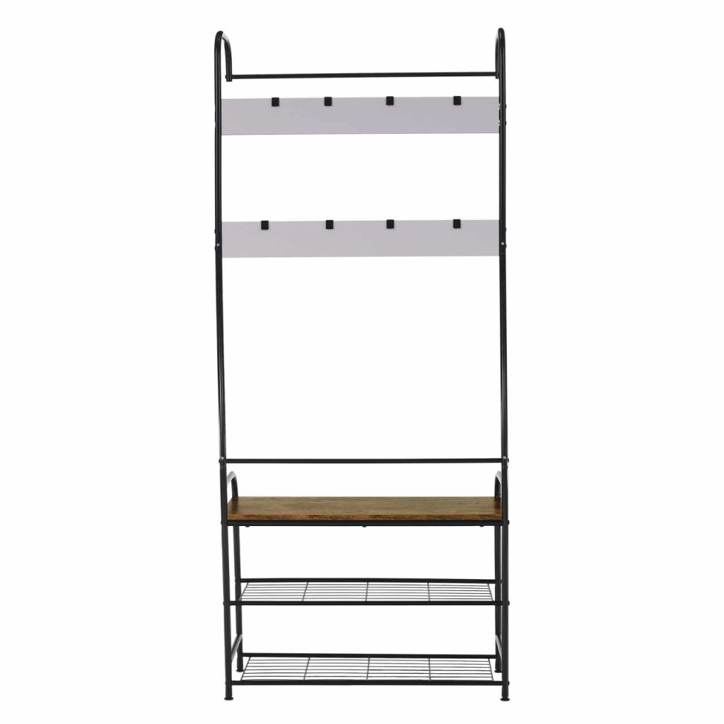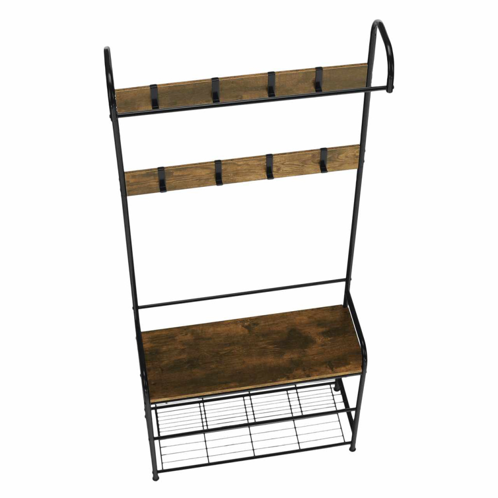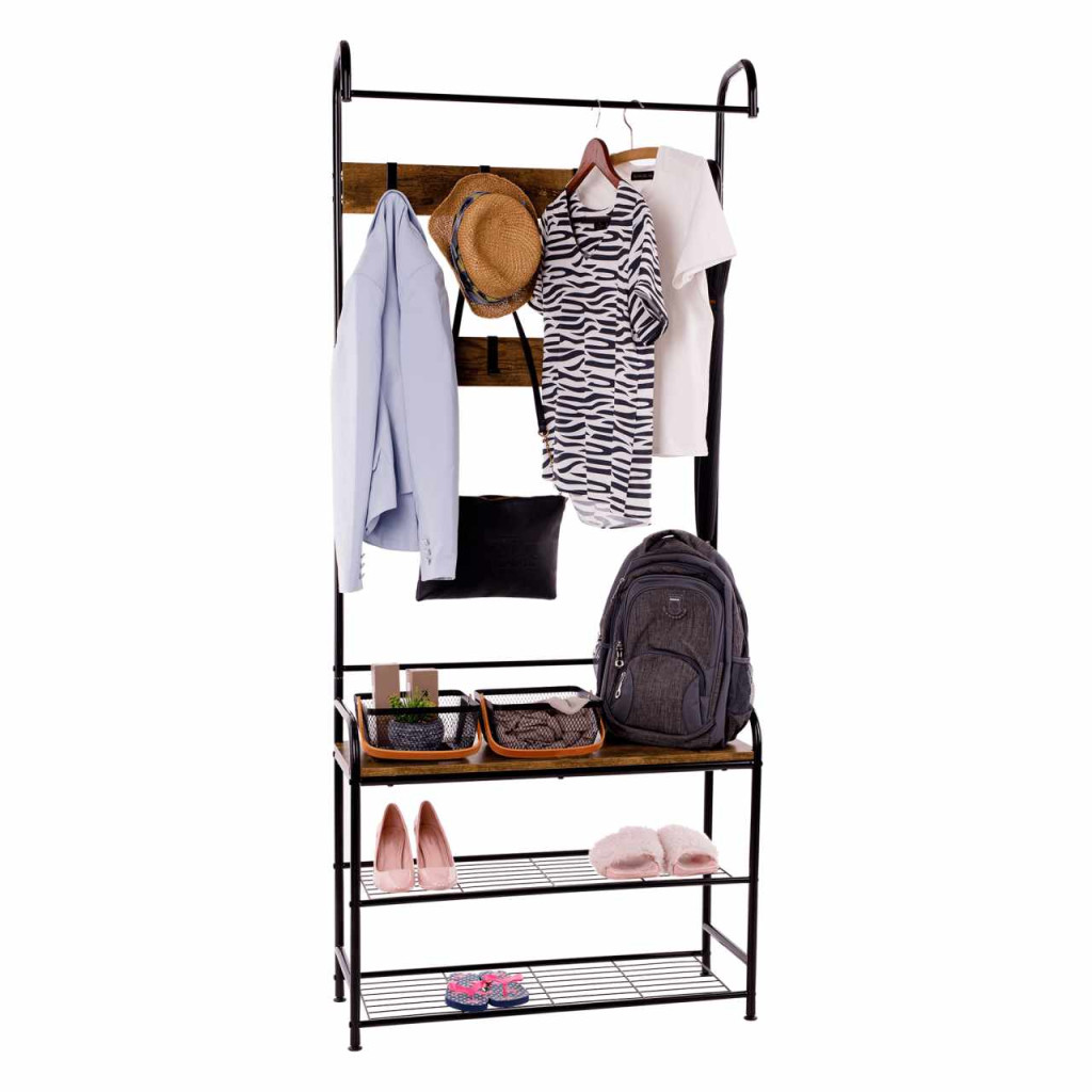 Akasztó cipőtárolóval, fekete fém/MDF rusztikus fa, KELAM