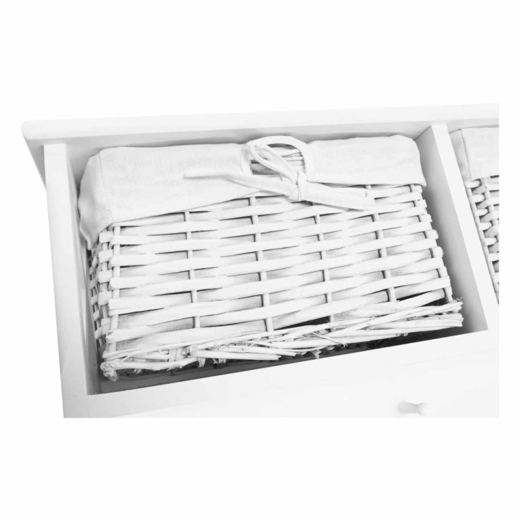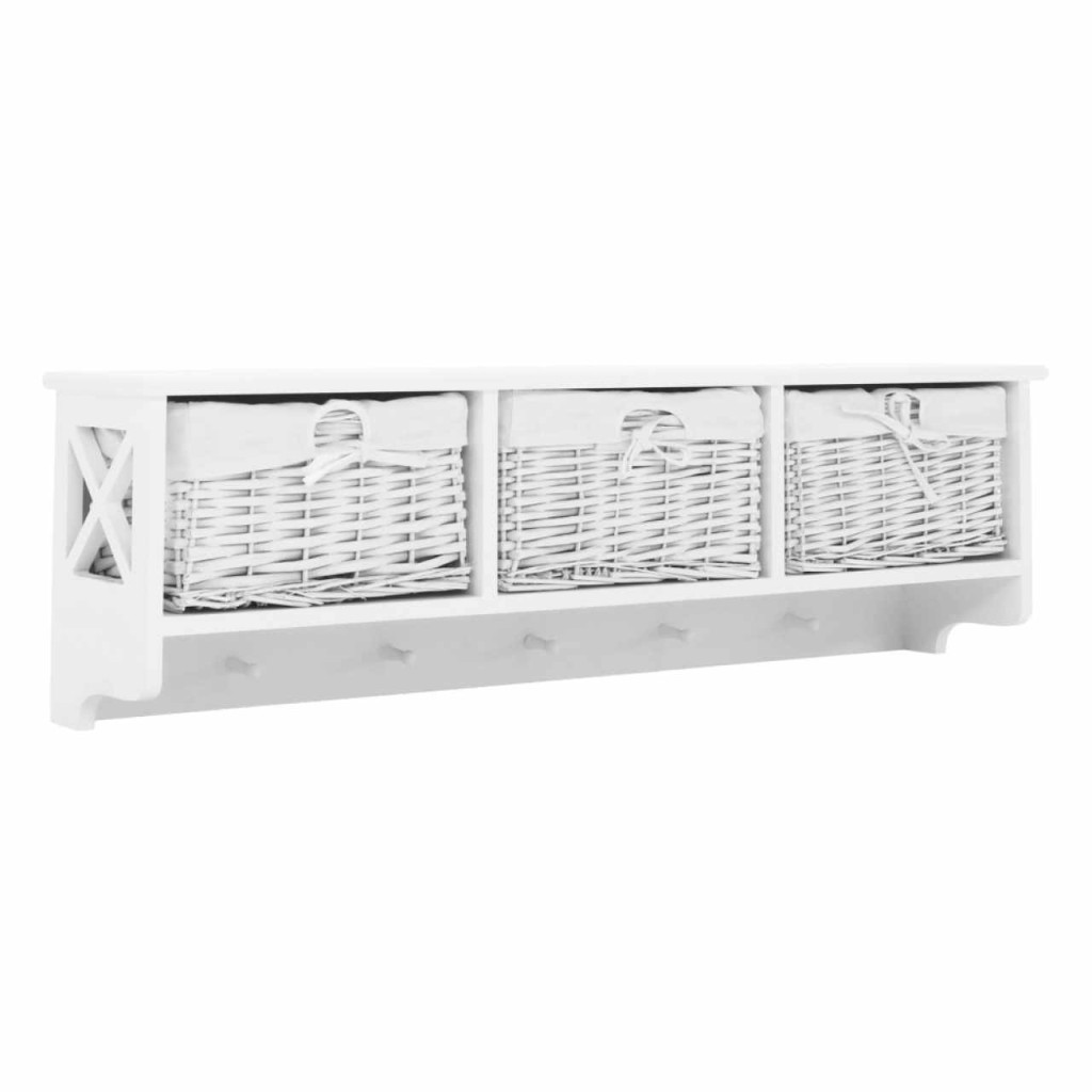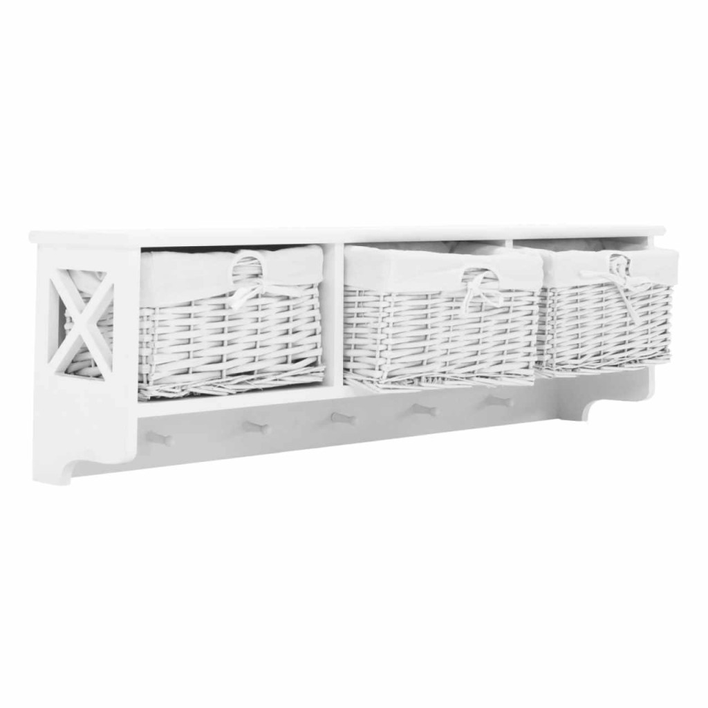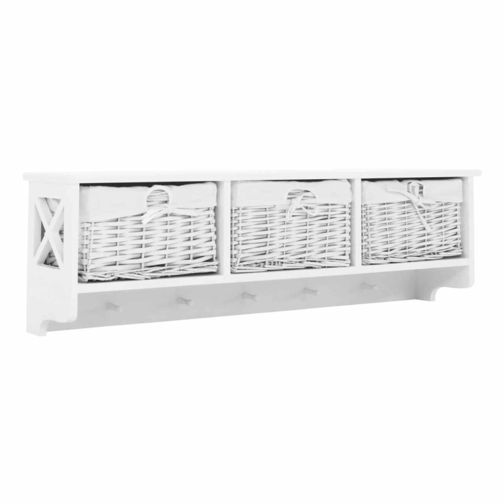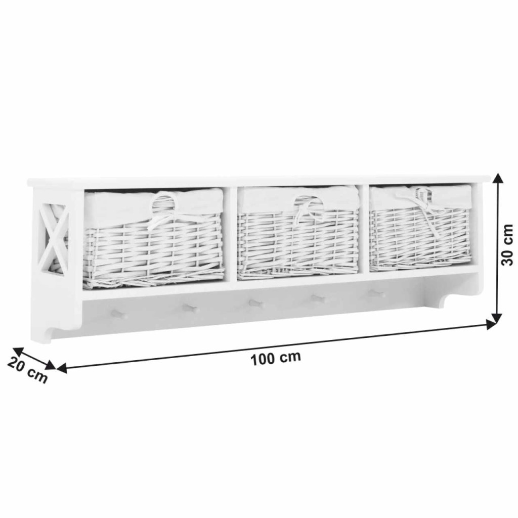 Akasztós polc kosarakkal RAFAELLO Színváltozat: fehér Anyag: fa/vessző/szövet Méretek (SzéxMéxMa): 100x20x30 cm Egészben szállítva