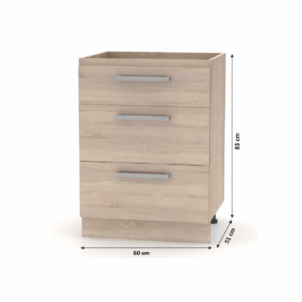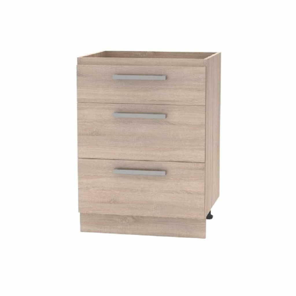 Fiókos alsószekrény 60 NOPL-058-0S Anyag: laminált DTD Színe: sonoma tölgy Méretek (SzéxMéxMa): 60x51x83 cm Minőségi szlovák termék. Szállítás szétszerelve. Az alap konyhasort és az összes alsó szekrényt munkalap nélkül szállítjuk. Vásárolható a munkalap - vastaság 38mm ára 28 900 Ft/fm Vásárolható hozzá univerzális (J/B) mosogató LAY ON.