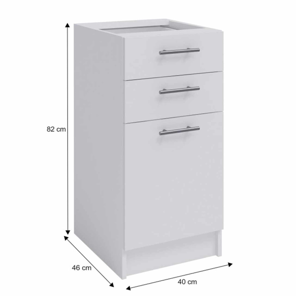 Kombinált alsószekrény FABIANA Változat: laminált DTD faforgácslap Színváltozat: fehér Méretek (SzéxMéxMa): 40x46x82 cm Anyag vastagsága: 16 mm Munkalap nélkül, szétszerelt állapotban szállítjuk.Hozzárendelhető Fabiana Metalic brown szürke munkalap 2,8 cm-es vastagsággal és 60 cm-es szélességgel. Az elemes szekrényeket munkalap nélkül szállítjuk. A munkalap ára 25 500 Ft. Vásárolható univerzális mosogató J/B LAY ON