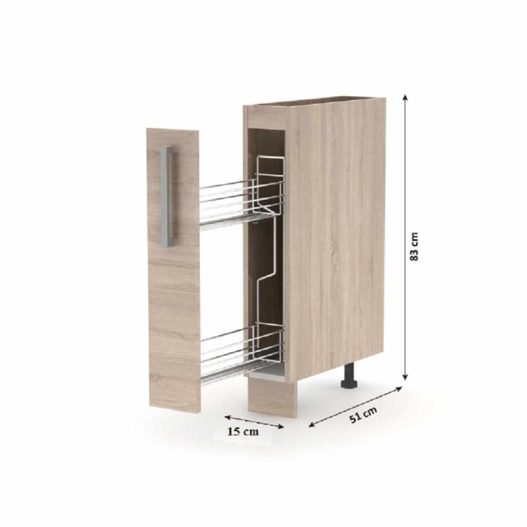 Szekrény kihúzható kosárral 1 DV NOPL-066-VK Anyag: laminált DTD Színe: sonoma tölgy Méretek (SzéxMéxMa): 15x51x83 cm Minőségi szlovák termék. Szállítás szétszerelve. Az alap konyhasort és az összes alsó szekrényt munkalap nélkül szállítjuk. Vásárolható a munkalap - vastaság 38mm ára 28 900 Ft/fm Vásárolható hozzá univerzális (J/B) mosogató LAY ON.