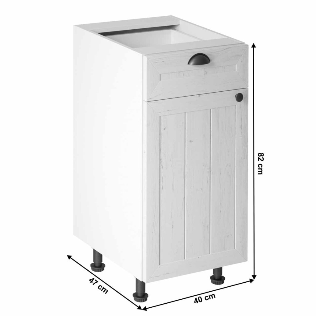 Alsószekrény fiókkal D40S1, fehér/sosna andersen, bal, PROVANCE
