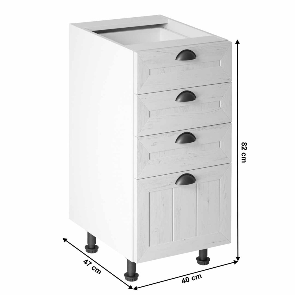 Alsószekrény négy fiókkal D40S4, fehér/sosna andersen, PROVANCE