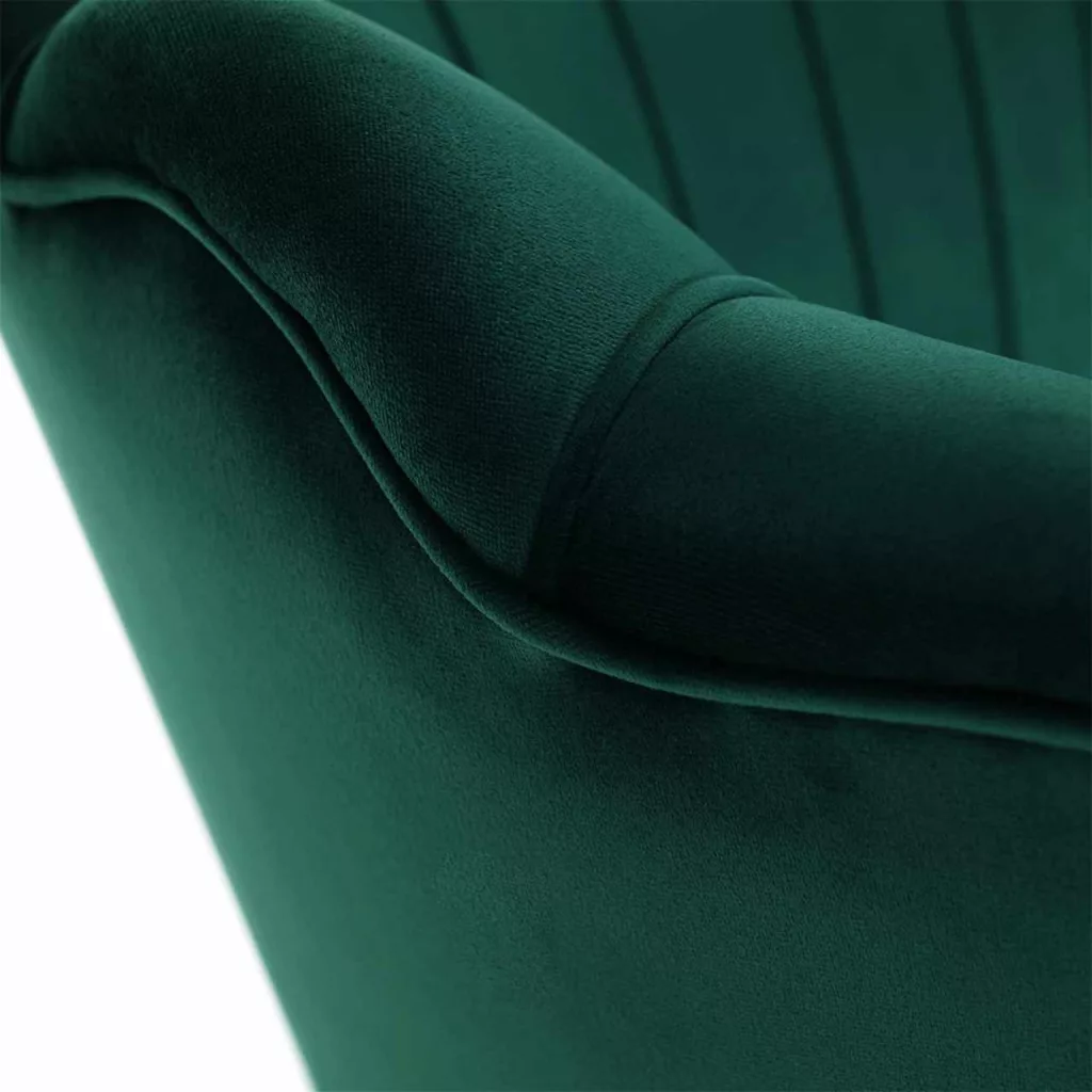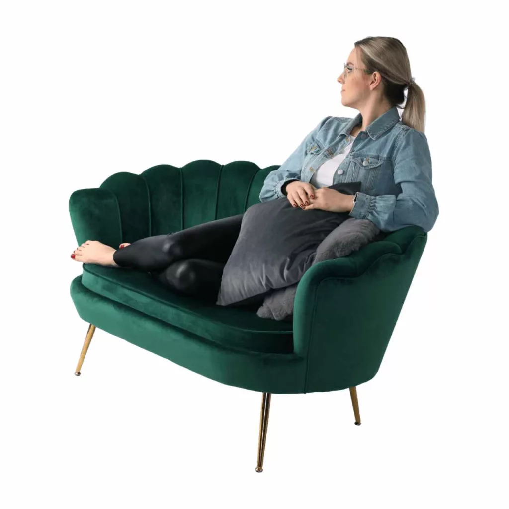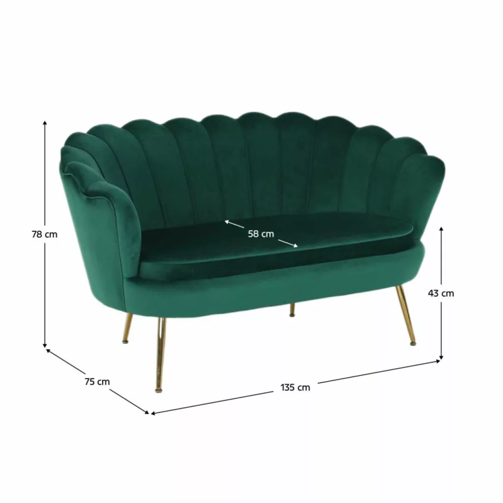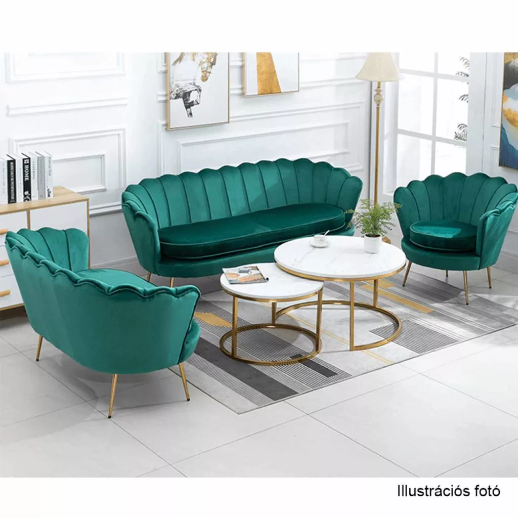 Ülőlap anyaga: Velvet szövet A szövet kopásállósága: 80 000 MartindaleSzín: smaragd 18 Lábak anyaga: fém Szín: gold króm-arany Méretei (SzéxMéxMa): 135x75x78 cmÜlésmagasság: 43 cmÜlésmélység: 58 cmTerhelhetőség: 180 kgDizájnos Art-deco stílus Kagyló alak Modern kidolgozás Bontásban szállítva.