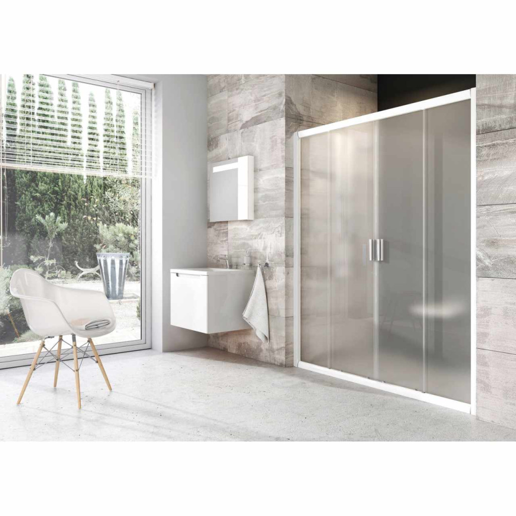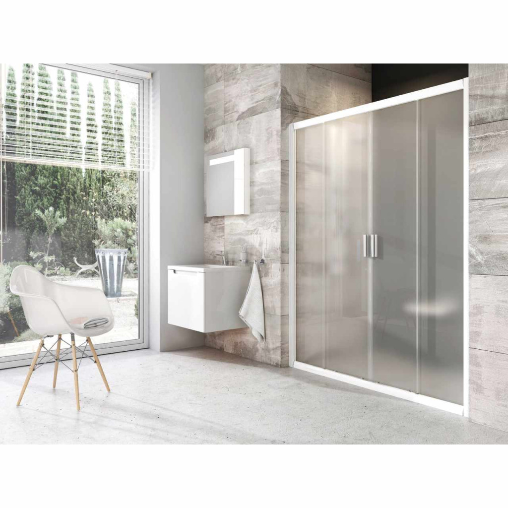 Négyrészes Blix zuhanyajtó fehér kivitelben, Grape biztonsági üveggel és Ravak AntiCalc® vízlepergető réteggel. Tolóajtós rendszer.