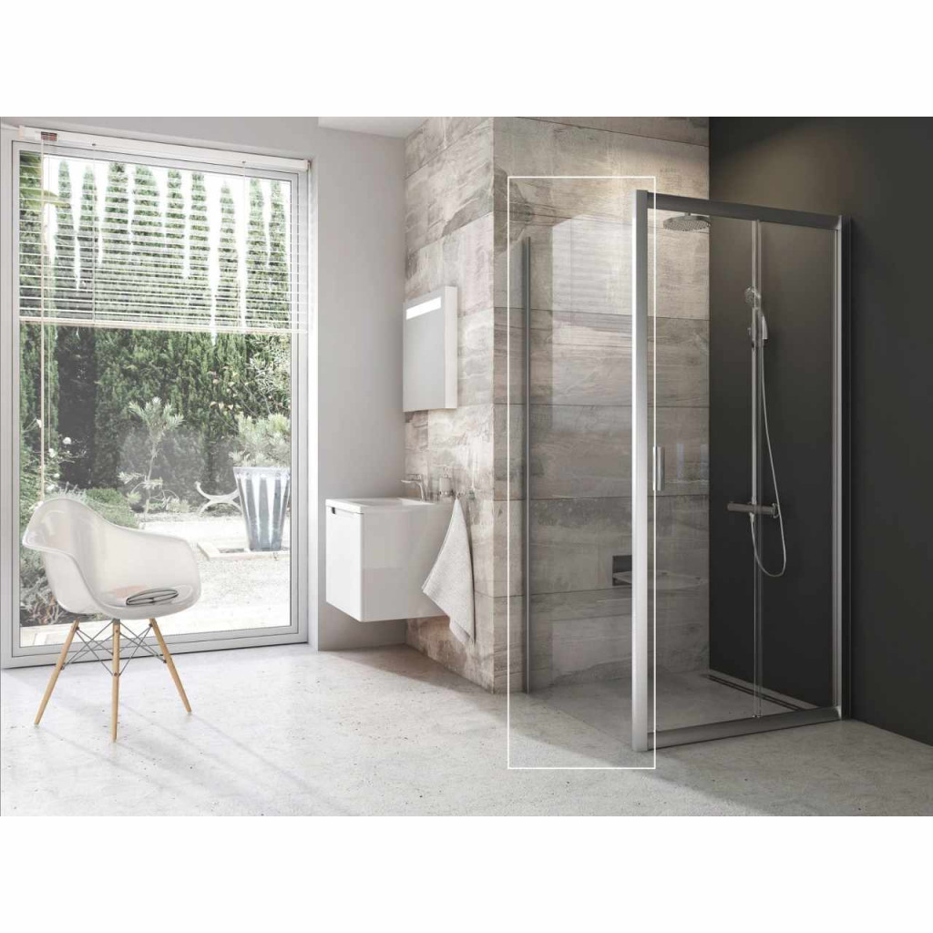 Blix egyrészes fix fal, szatén kivitelben, átlátszó biztonsági üveggel és Ravak AntiCalc® vízlepergető réteggel. Forgatható termék bal és jobb oldali változat kialakításához.