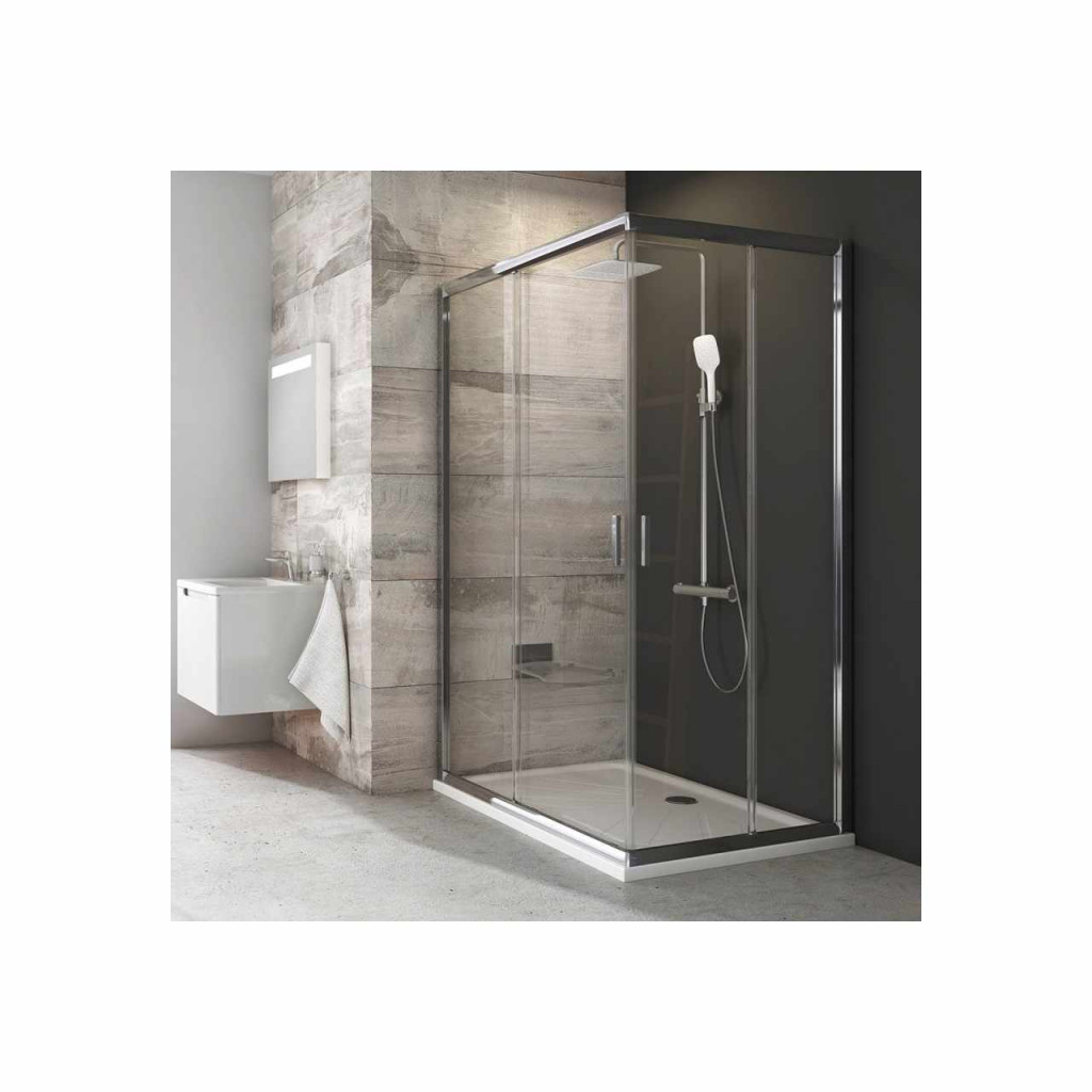 Egy oldal Blix sarokzuhanykabin kialakításához, krómhatású kerettel, átlátszó biztonsági üveggel és Ravak AntiCalc® vízlepergető réteggel. Tolóajtós rendszer. A termék egy fix és egy mozgó részből áll. A teljes zuhanykabin két oldalból áll!