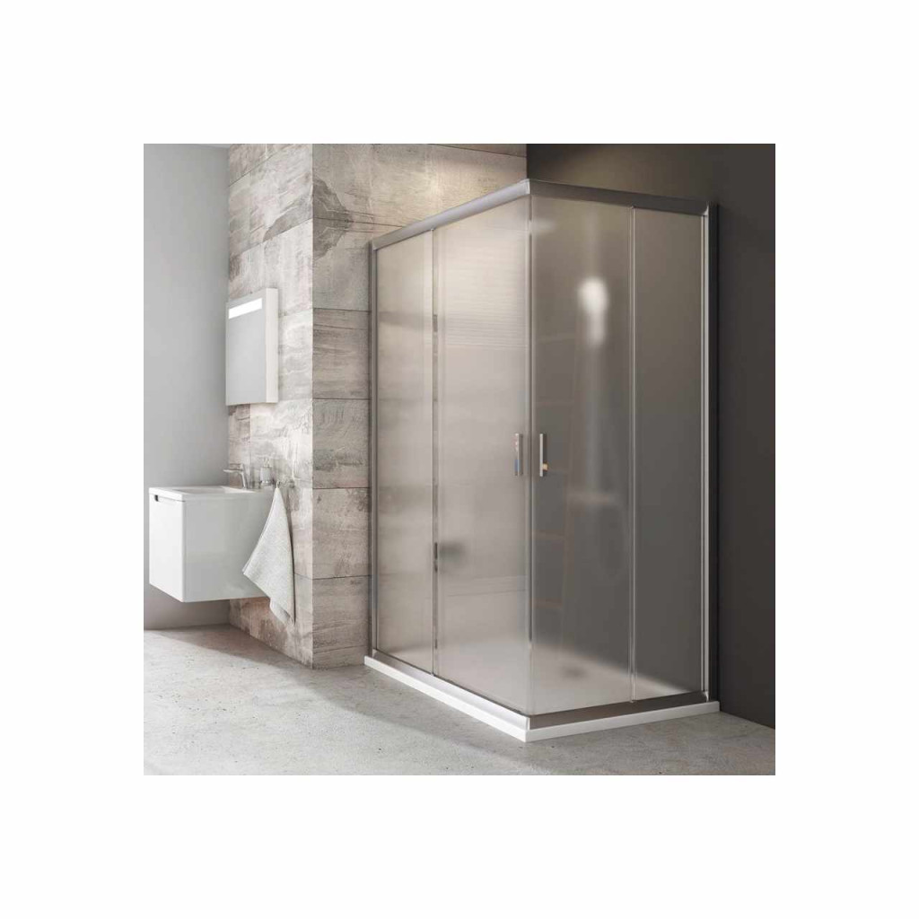 Egy oldal Blix sarokzuhanykabin kialakításához, szatén kerettel, Grape biztonsági üveggel és Ravak AntiCalc® vízlepergető réteggel. Tolóajtós rendszer. A termék egy fix és egy mozgó részből áll. A teljes zuhanykabin két oldalból áll!