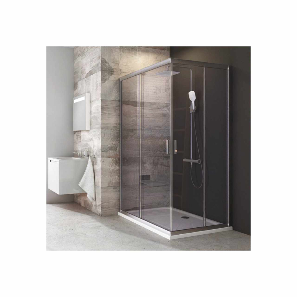 Egy oldal Blix sarokzuhanykabin kialakításához, szatén kerettel, átlátszó biztonsági üveggel és Ravak AntiCalc® vízlepergető réteggel. Tolóajtós rendszer. A termék egy fix és egy mozgó részből áll. A teljes zuhanykabin két oldalból áll!