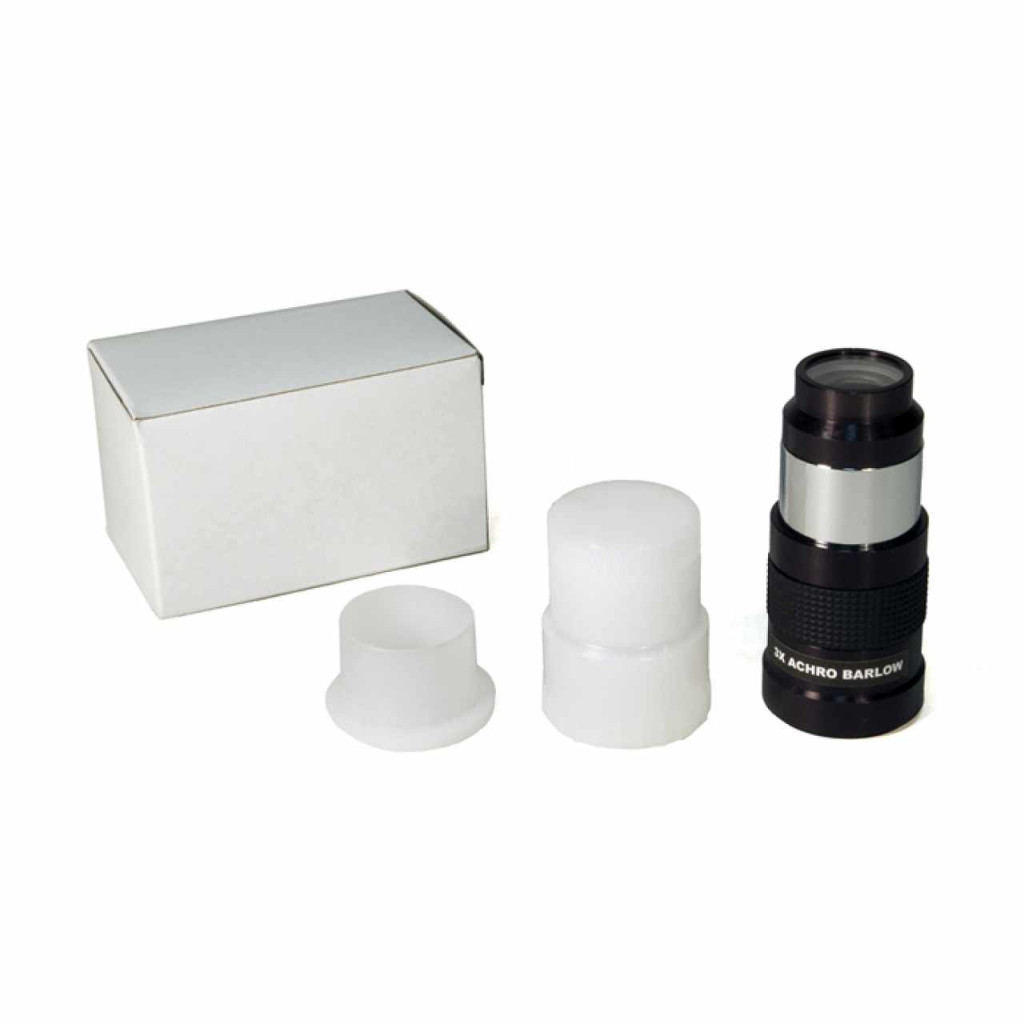 A Bresser 3x akromatikus Barlow lencse megnöveli a teleszkóp effektív fókusztávolságát 3-szorosára, és maximális nagyítást tesz lehetővé a Hold és a bolygók megfigyelésekor. Emellett minimálisra csökkenti a kép torzítását.