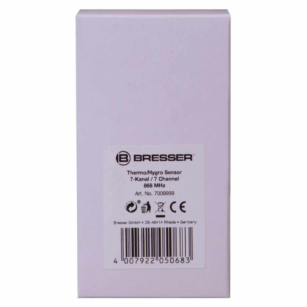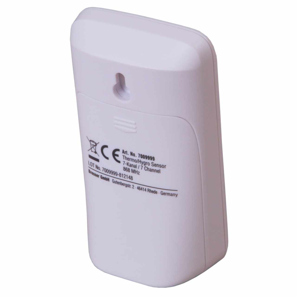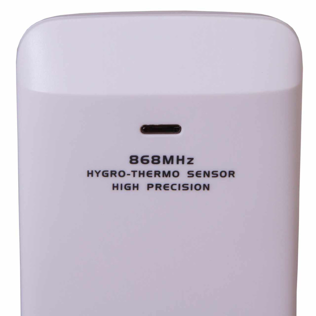 Remote sensor for measuring of temperature and humidity. Seven channels settable. With extra long radio range of 150 meters on a radio frequency of 868 MHz.