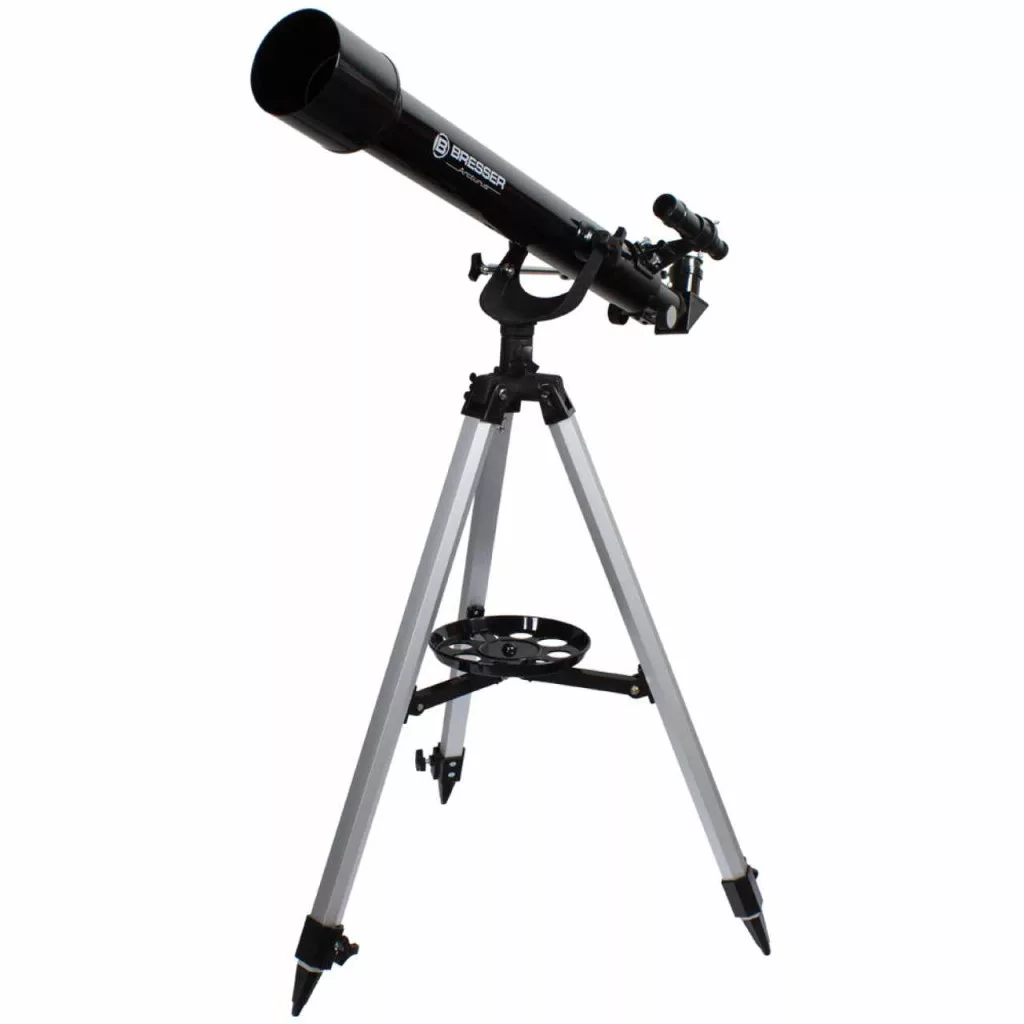Akromatikus refraktor. Objektívlencse átmérője: 60 mm. Fókusztávolság: 700 mm , A Bresser Classic 60/900 AZ teleszkóp egy nagy fókusztávolságú akromatikus refraktor, amely megfelelő a naprendszer bolygóinak tanulmányozásához, és tájképek és vadvilág megfigyeléséhez is. A Hold krátereit vagy a Szaturnusz gyűrűit is felfedezheted a teleszkóp segítségével. A Bresser Classic 60/900 AZ éles optikájának és a kis súlyának köszönhetően egy sokoldalú, kezdő teleszkóp, tökéletes választás fiatal és szívükben fiatal amatőr csillagászoknak.
