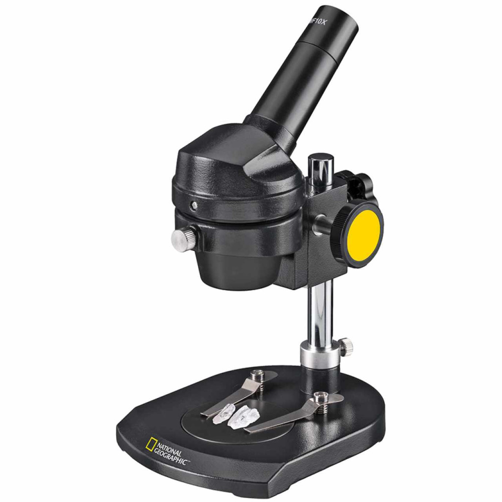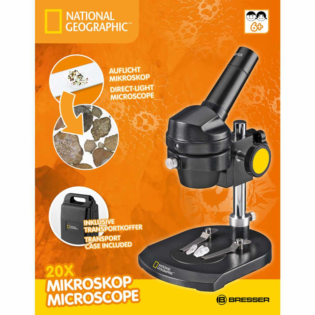 The National Geographic reflected light microscope with 20x magnification brings you closer to the world of the microcosm! The compact and stable reflected-light microscope is a great starter device!
