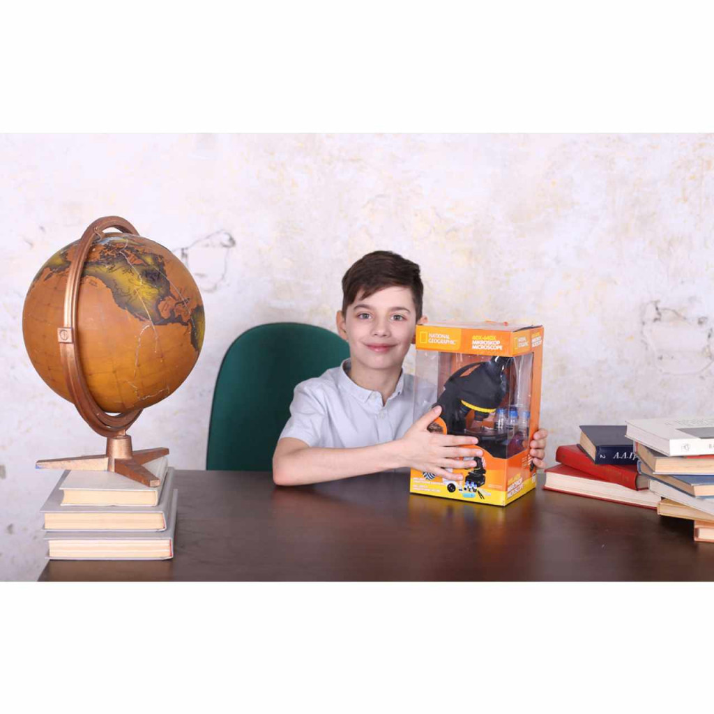 Mikroszkóp gyerekeknek. Kísérletező készletet tartalmaz. Minták áteső fényben történő megfigyeléséhez. Nagyítás: 40–640х , A Bresser National Geographic 40–640x mikroszkóp kifejezetten fiatal felfedezőknek készült. A mikroszkóp revolverfejjel van ellátva, amelynek az elforgatásával válthat a három fix nagyítási lehetőség közül 40x és 640x nagyítási tartományon belül. Az alsó LED-világítás (a készletben található) elemekkel működik, amely segítségével áteső fényben tanulmányozhatja a mintákat. Az okostelefon adapter segítségével a kis tudósok különleges fényképeket és videókat készíthetnek a vizsgálataik eredményeiről!