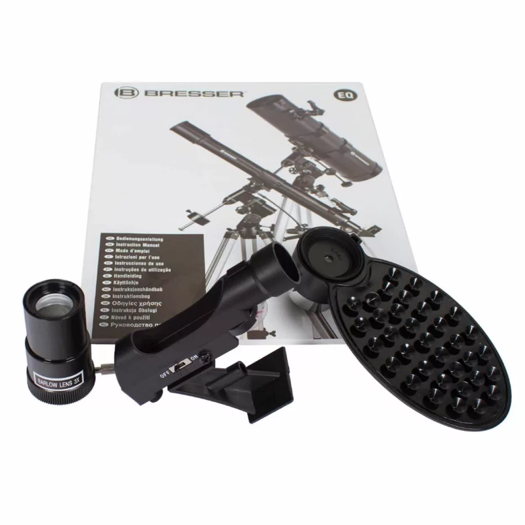 Bresser Pollux 150/1400 EQ3 – newtoni reflektor beépített Barlow lencsékkel és ekvatoriális EQ-3 állvánnyal van ellátva. Ezzel az állvánnyal gyorsan megtalálhatja az égitesteket, és könnyen követheti az útjukat csupán egy gomb elforgatásával. A teleszkóp egy valóban univerzális eszköz – 150 mm-es rekesznyílásának köszönhetően elegendő fényt gyűjt össze a halvány objektumok (például csillagködök, csillaghalmazok és galaxisok) megfigyeléséhez. De közben megfigyelheti vele a Naprendszer bolygóit, a fényes üstökösöket, a legfeljebb 13-as magnitúdójú csillagokat (beleértve a kettőscsillagokat is). A teleszkóp maximális hasznos nagyítása 300x. Ez az 1400 mm-es fókusztávolságú teleszkóp igen rövid és könnyű optikai tubussal rendelkezik, aminek köszönhetően könnyen szállítható. A stabil háromlábú állvány egy kényelmes tálcával van felszerelve, aminek segítségével kéznél lehetnek a szükséges tartozékok, például a szemlencsék, szűrők és egyéb optikai eszközök – ezek mindegyike megtalálható a teleszkóphoz mellékelt készletben.