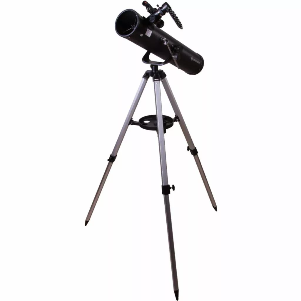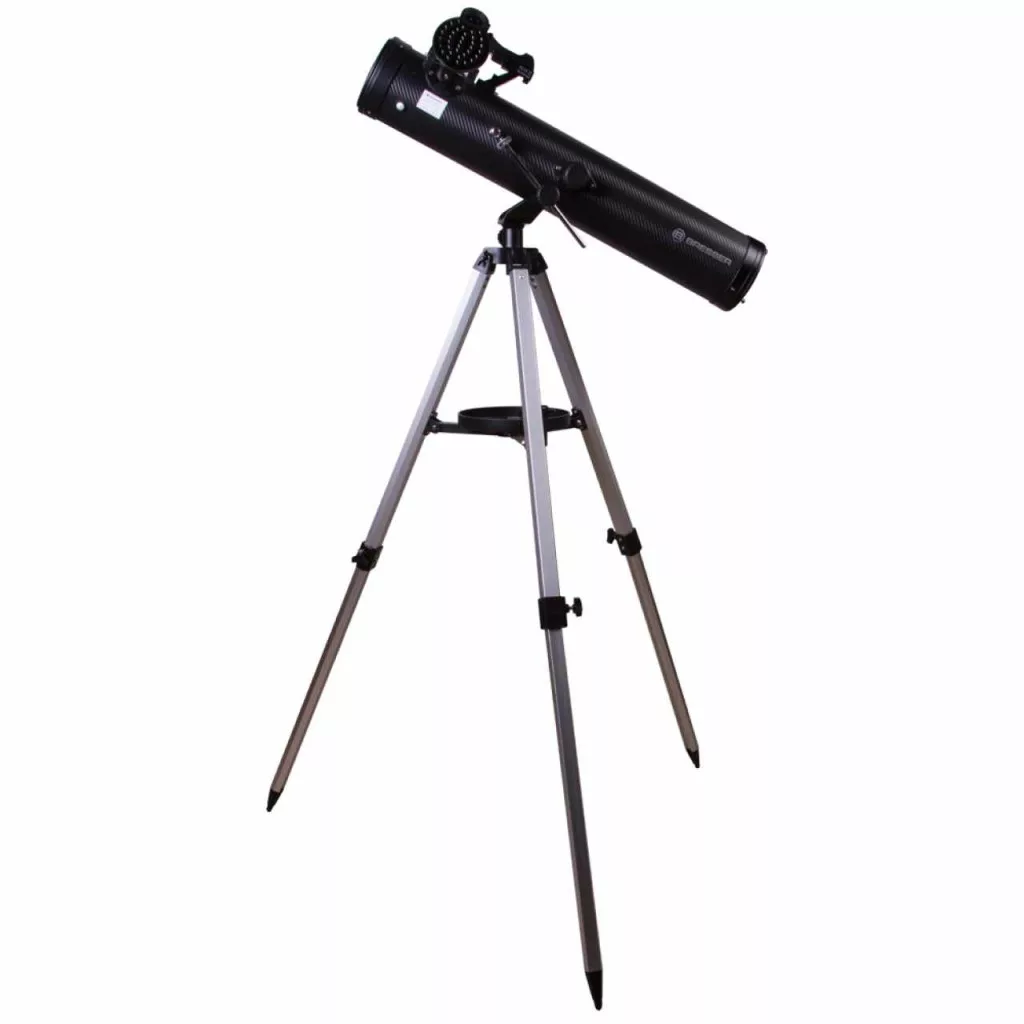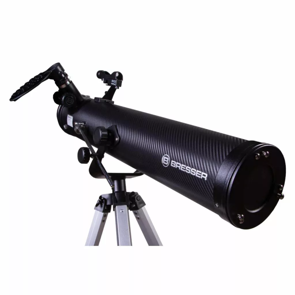 Newton-teleszkóp. Elsődleges tükör átmérője (rekesznyílás): 76 mm. Fókusztávolság: 700 mm , Ha a Naprendszerben található objektumok részletes tanulmányozásához ideális műszert keresel, akkor a Bresser Venus 76/700 teleszkóp jó választás lehet számodra. Ez az eszköz a Hold megfigyeléséhez is kiváló társ lehet. Ez a Newton-reflektor minimális kromatikus aberráció mellett minőségi látványt nyújt. Az eszköz még egy gyermek által is könnyen vezérelhető, egyszerű alt-azimut állványhoz van rögzítve. Az állvány és az optikai tubus egy könnyű és állítható, alumíniumból készült háromlábú állványon nyugszik, amelyen ráadásul még egy tartozéktartó tálca is található. A csomag két szemlencsét, valamint egy Barlow-lencsét is tartalmaz. Ezeknek a tartozékoknak köszönhetően 35-szöröstől akár 525-szörösig terjedő nagyítási fok is elérhető. A csomagban mellékelt okostelefon-adapter segítségével pedig elkészítheted első asztrofotóidat.