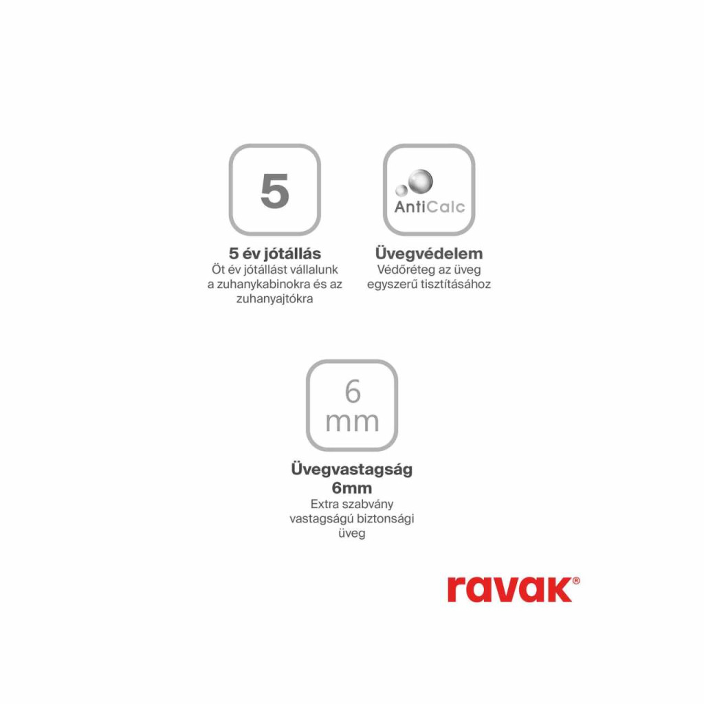 Cool! kétrészes zuhanyajtó fényes krómozott kivitelben, átlátszó biztonsági üveggel és Ravak AntiCalc® vízlepergető réteggel. Zsanéros nyíló rendszer. Forgatható termék bal és jobb oldali kivitel kialakításához.