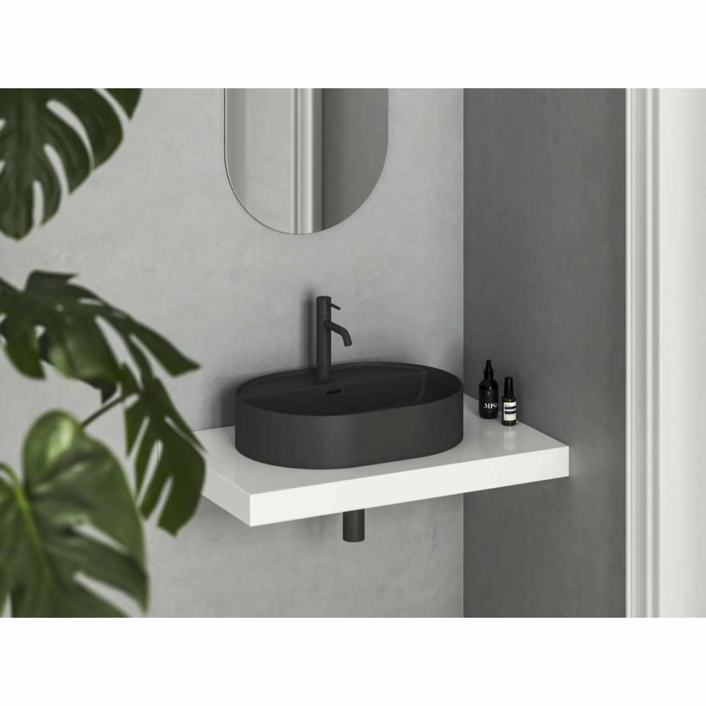Vékony falú kerámia mosdó Ceramic Slim asztalra vagy szekrényre történő beépítéshez, túlfolyóval. Matt fekete kivitelben.