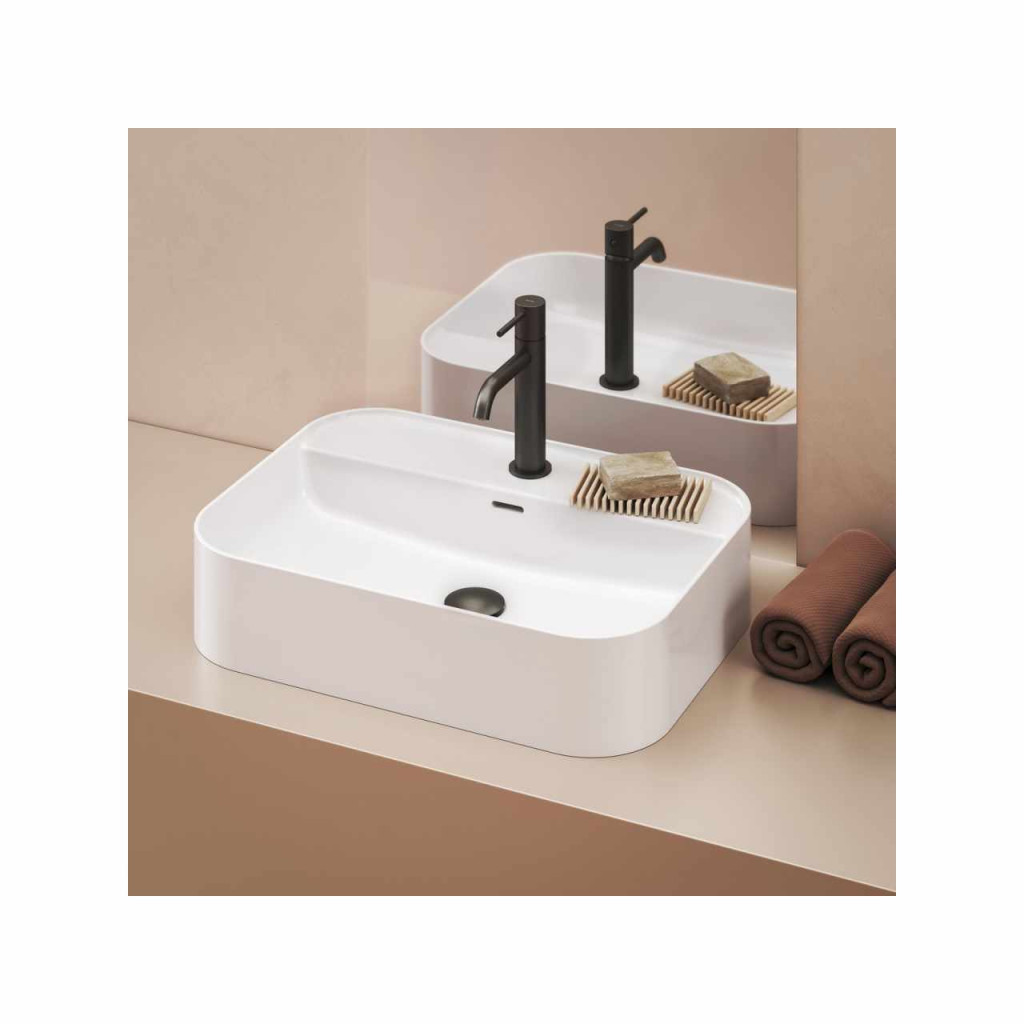 A Ceramic Slim Shelf R vékonyfalú mosdó minőségi kerámiából készült, és kizárólag I alakú mosdó alatti lapra szerelhető.
