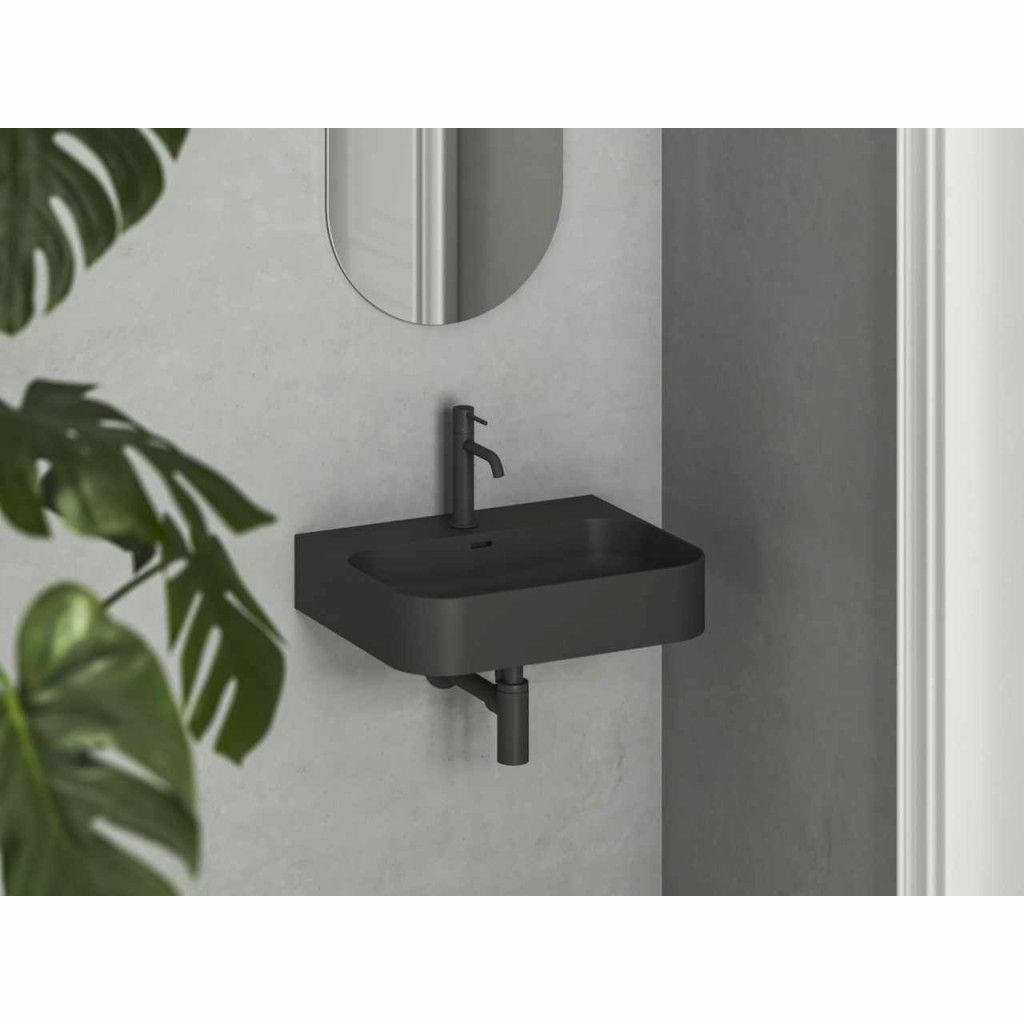 Vékony falú kerámia mosdó Ceramic Slim Wall R N faltra szerelik, asztalra vagy szekrényre történő beépítéshez, túlfolyóval. Matt fekete kivitelben.