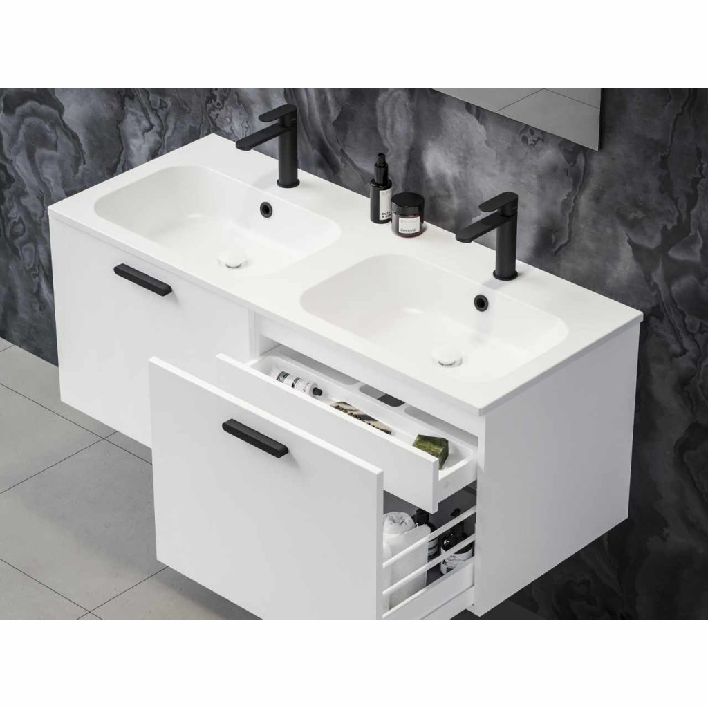 - választható kiegészítők: mosdócsapok, szifonok, Chrome vízvezeték csaptelepek, Chrome 120 dupla mosdó alatti szekrény, tükör, fürdőszoba kiegészítők