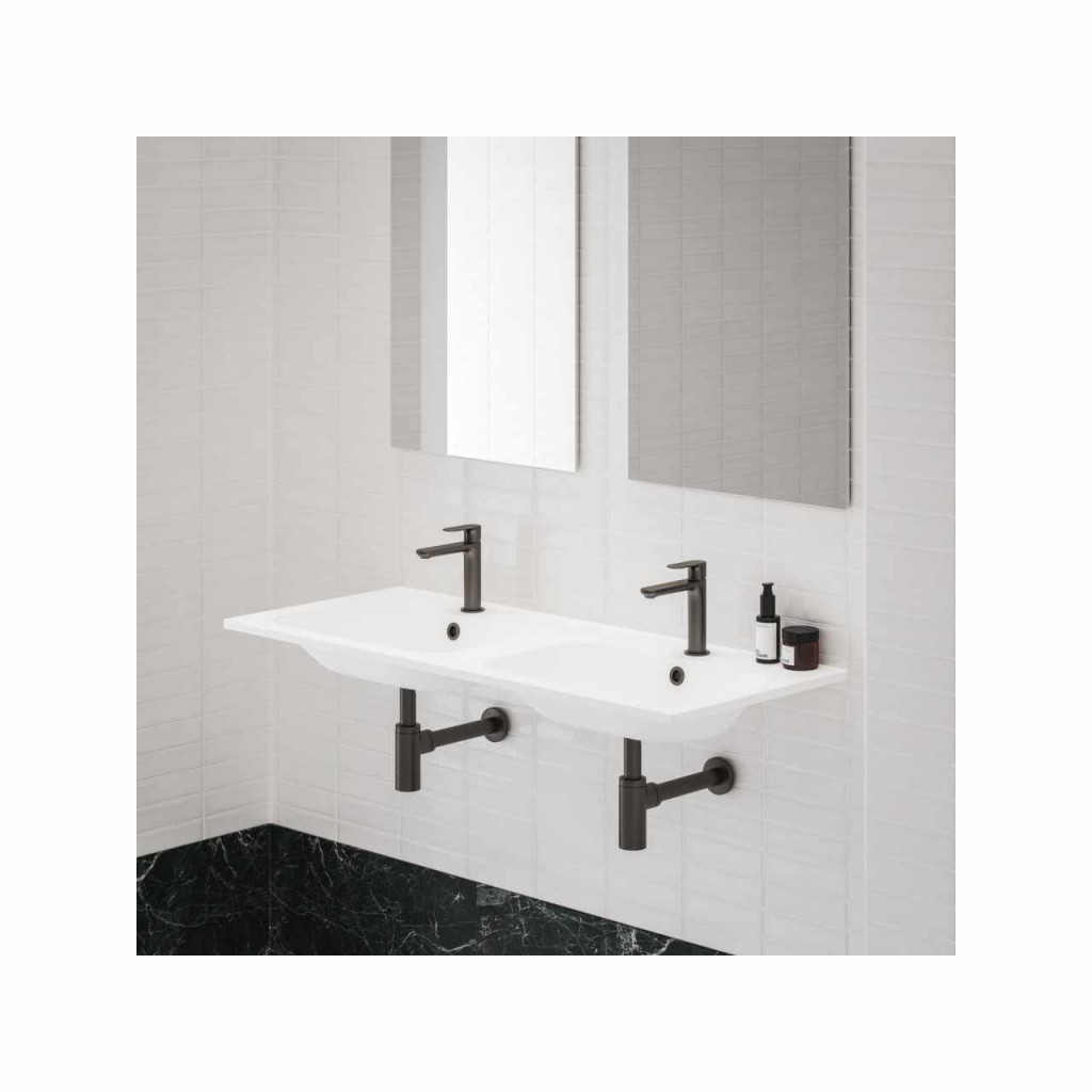 Falra szerelhető vagy beépíthető dupla mosdó öntött márványból a Chrome Slim függesztett szekrénybe, túlfolyóval. Fehér kivitel.