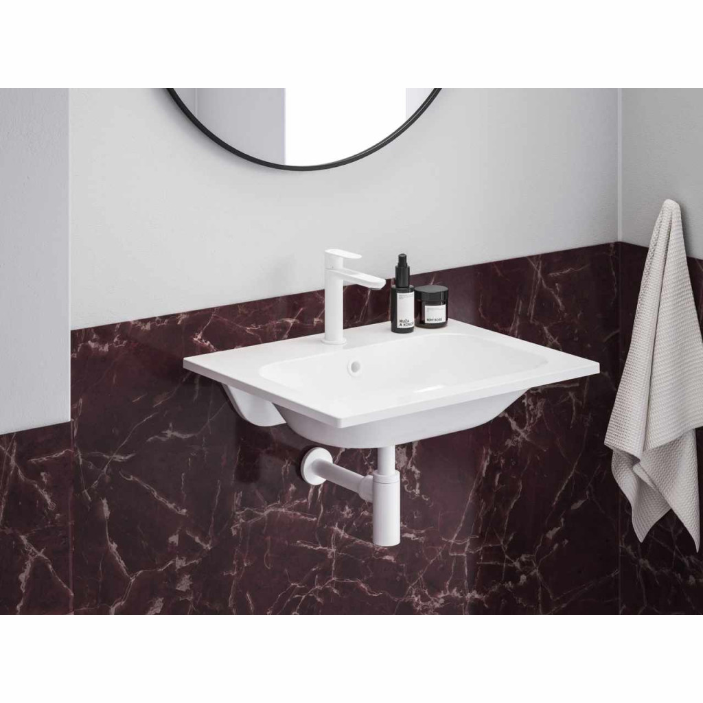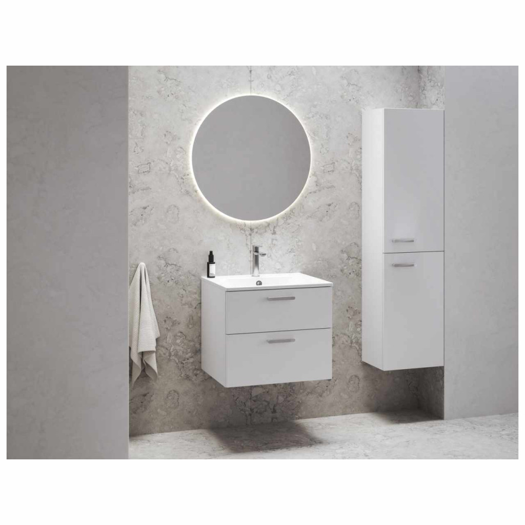 Chrome Slim öntött műmárvány mosdó falra szerelhető vagy függő szekrénybe beépíthető, túlfolyóval. Fehér design.
