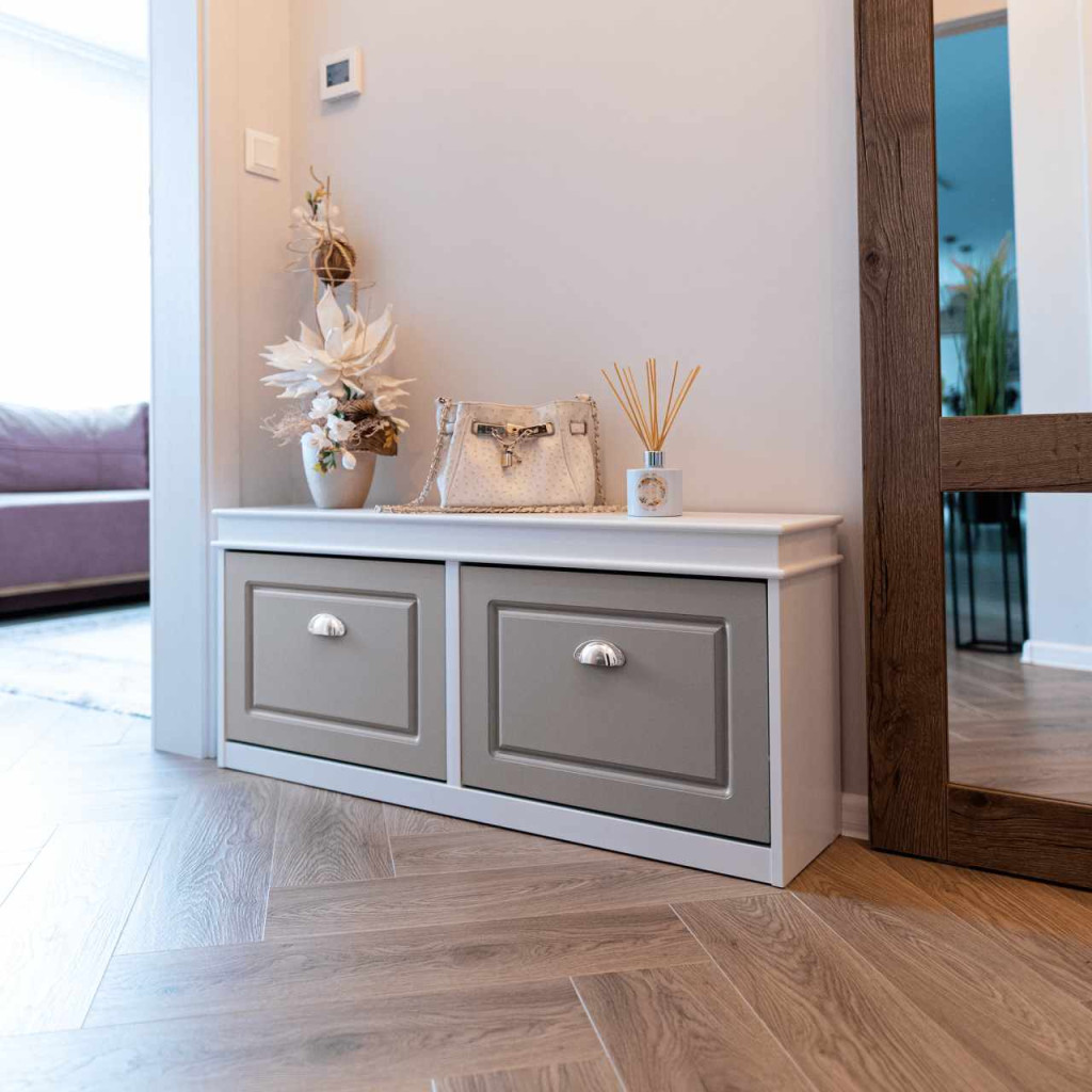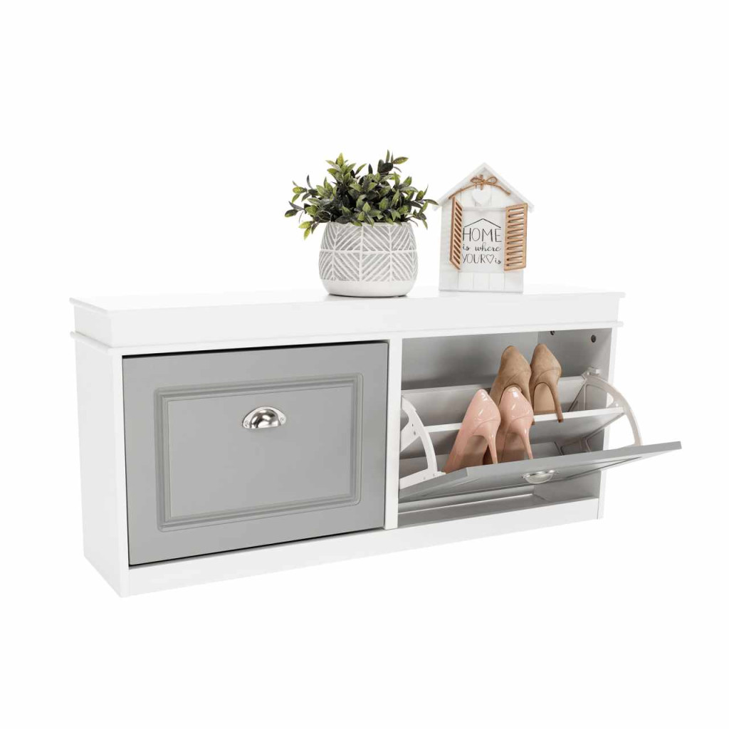 Cipőpolc, 2-soros, fehér/szürke, SEBER TYP 4