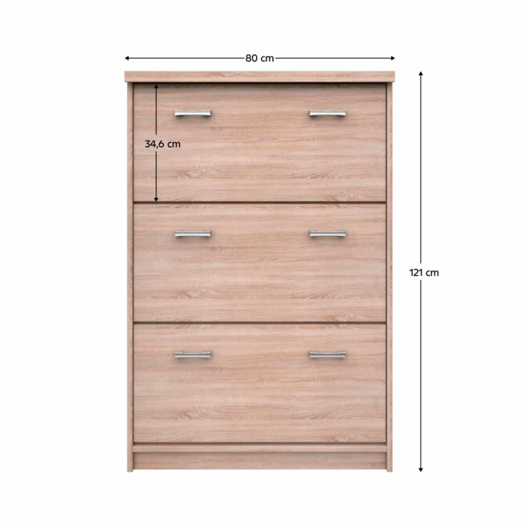 Cipősszekrény 3K TOPTY TYP 24Anyag: laminált DTDSzín: sonoma tölgyMéretek (SzxMéxMa): 80x27x121 cmHárom billentős fiókSzétszerelve szállítva