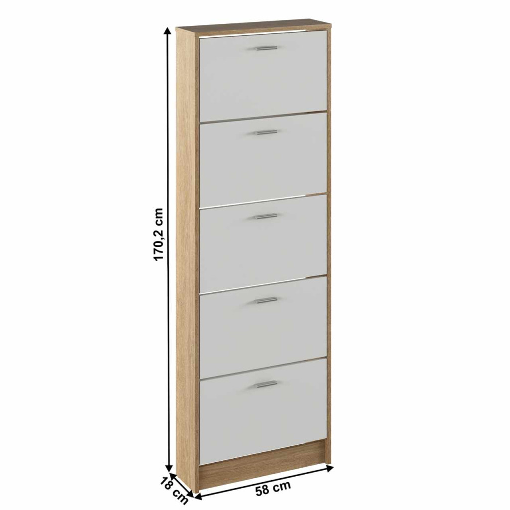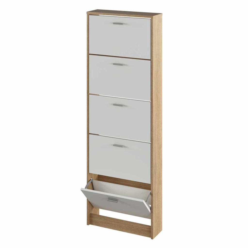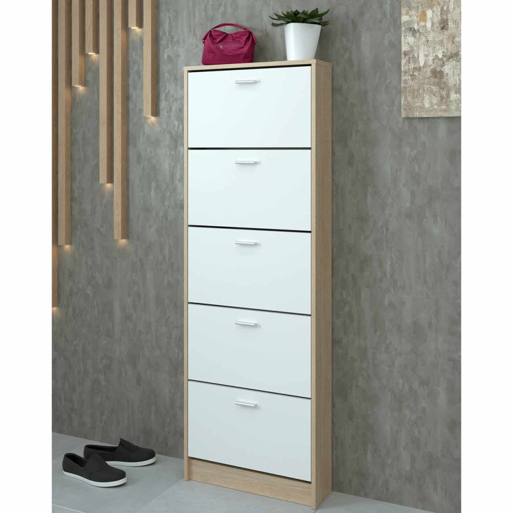 Cipősszekrény, 5 soros, sonoma tölgy/fehér, MOBI 15 , Barna , Faforgács
