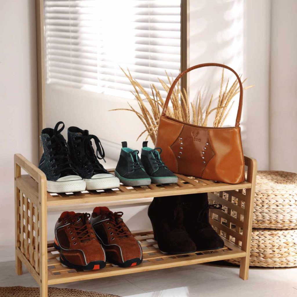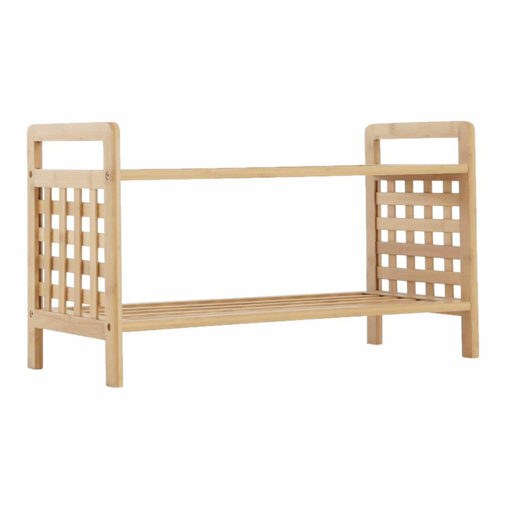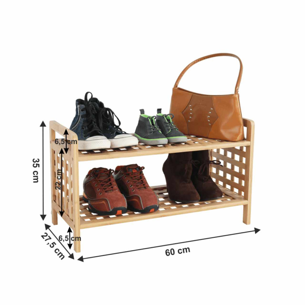 Cipősszekrény SOVETO TYP 1 Anyag: lakkozott bambusz Szín: természetes bambusz Méretek (SzéxMéxMa): 60x27,5x35 cm 2 polcos Magasság a polcok között: 22 cmSzállítás szétszerelve.
