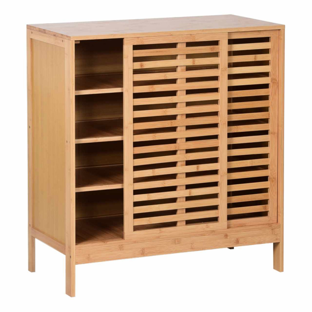 Szerkezet anyaga: lakkozott bambuszSzerkezet színe: természetes bambuszMéretek (SzxMéxMa): 80x40x88 cmLábak magassága: 13 cmAnyag vastagsága: 1,5 cm4 polcosTolóajtókEgyszerű és praktikusEgyszerű összeszerelésTermészetes dizájnSzétszerelve szállítva