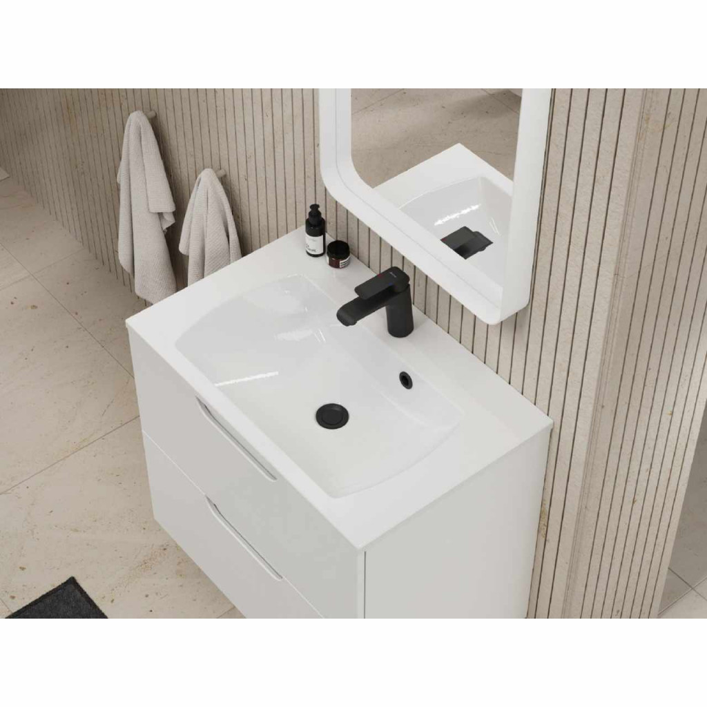 Mosdó öntött márványból Classic Slim, falra szereléshez vagy függesztett szekrénybe süllyesztéshez, túlfolyóval. Fehér kivitelben.