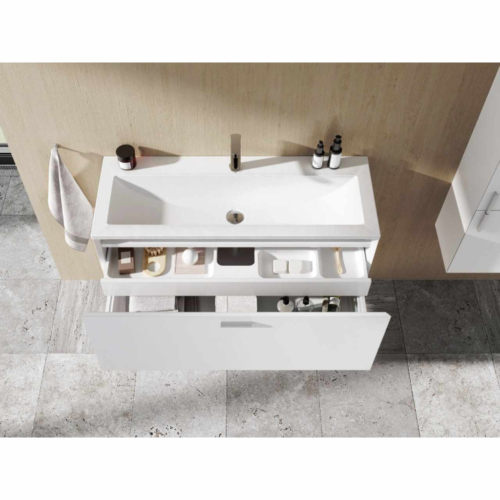 Clear öntött márványból készült bútorba süllyeszthető mosdó, túlfolyó nélkül. Fehér kivitelben.