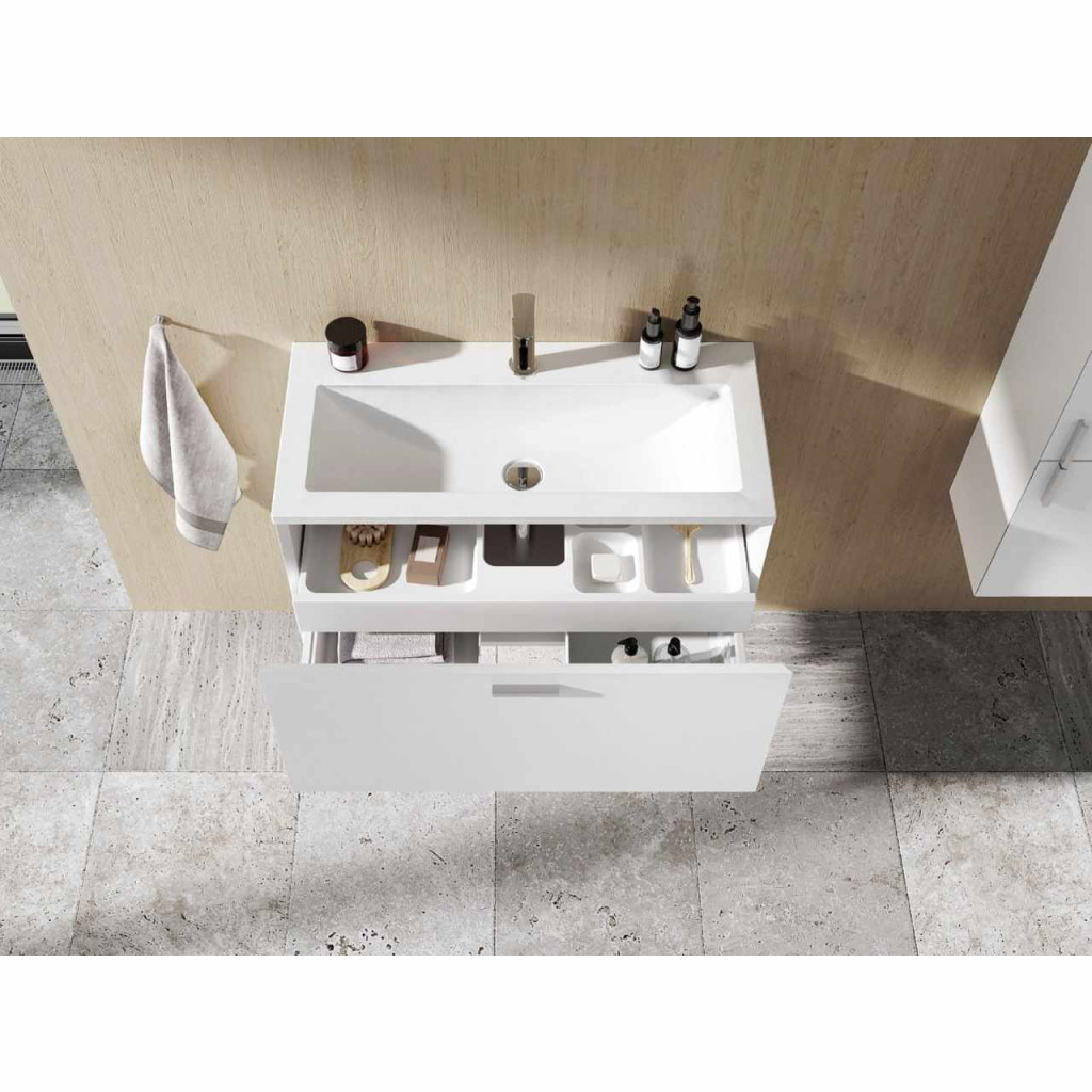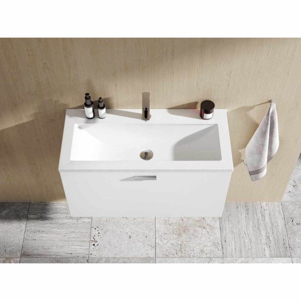 Clear öntött márványból készült bútorba süllyeszthető mosdó, túlfolyó nélkül. Fehér kivitelben.