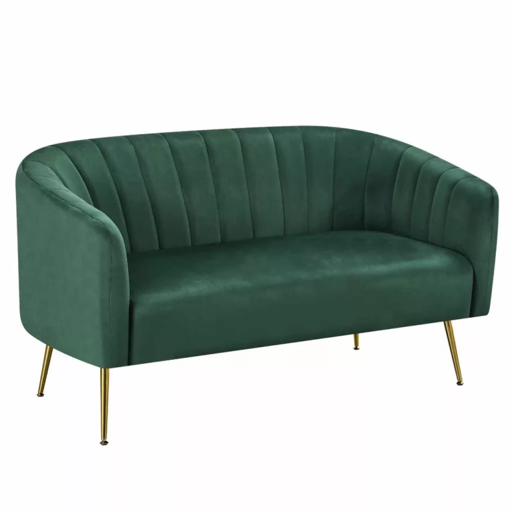 Design kétszemélyes kanapé, sötétzöld Velvet szövet/gold króm-arany, BAGY | Arany | Szövet