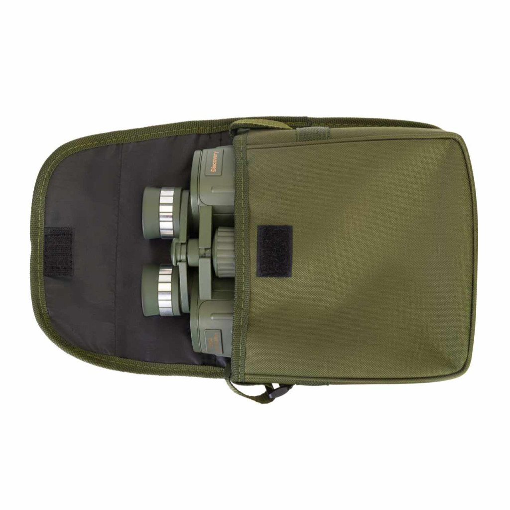 A Discovery Field 12x50 kétszemes távcső optikája BK-7 típusú üvegből készült, a váz anyag tartós, ámde könnyű műanyag. A gumírozott váz védelmet nyújt a mechanikus behatásoktól, a nedvességtől és a portól. A külső felület domborúságának köszönhetően az eszköz stabilan fekszik a kézben, nem csúszik. A lencsék a kényelmes központi fókuszállító tubus segítségével állíthatók be, amely szintén gumírozott. Szükség esetén a dioptriát is beállíthatja, ha a jobb és bal szeme között eltérés van.