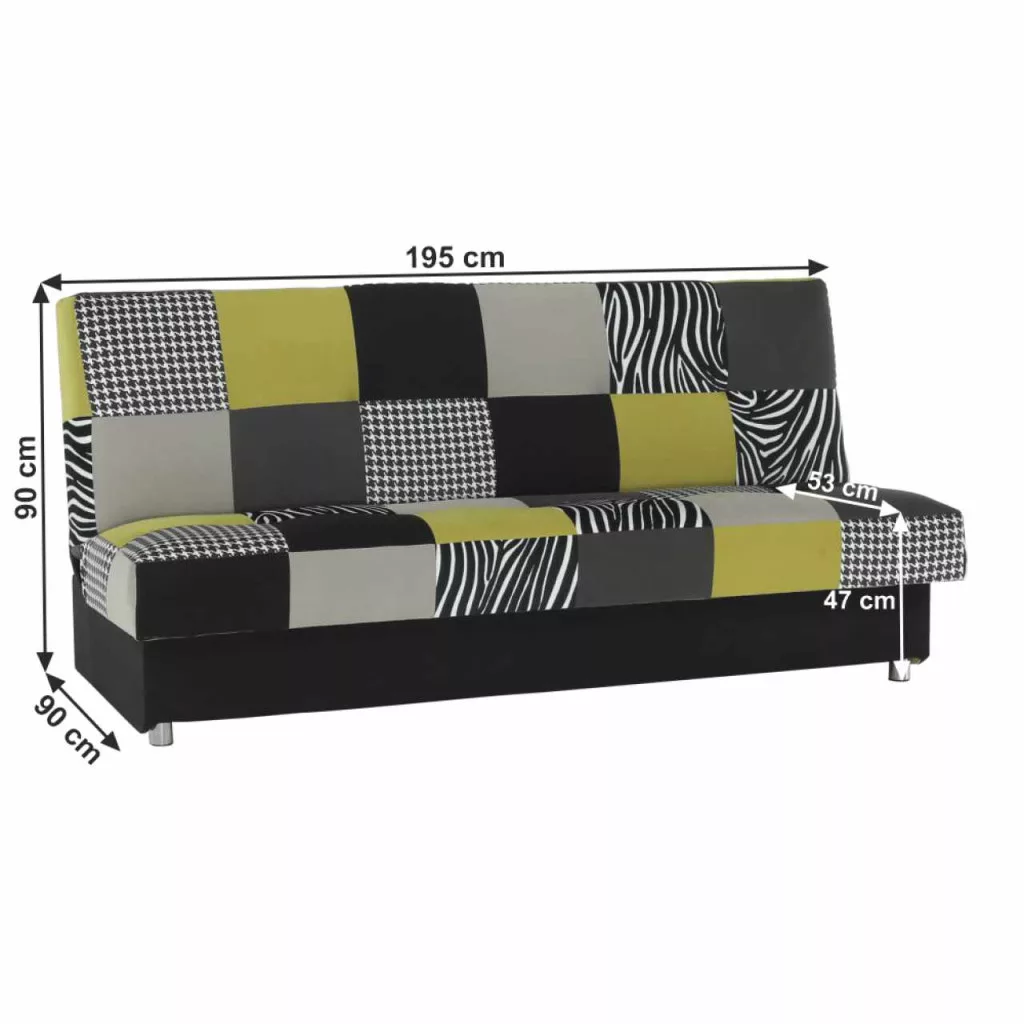 Széthúzható kanapé ALABAMA tárolóhellyel. Alkalmas mindennapi alváshoz is. Anyag: szövett Turkus A szövet kopásállósága: 55 000 MartindaleSzín: lime zöld/szürke/fekete Méretek (SzéxMéxMa): 195x90x90 cm Fekvőfelület: 116x195 cm Terhelhetőség: 90 kgKiváló minőségű bonel szivacs töltéssel az ülés részén.