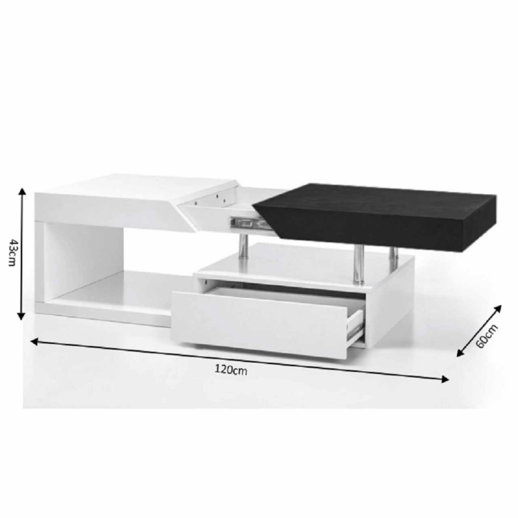 Dohányzóasztal MELIDA Színes kivitelben: magasfényű fehér / szürke fa Anyag: MDF/fém Mérete (SzéxMéxMa): 120x60x43 cm Lapraszerelten szállítva