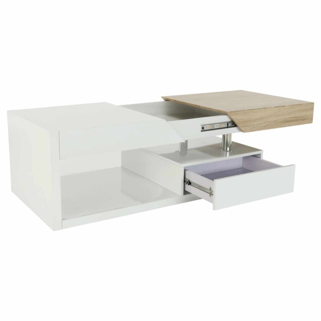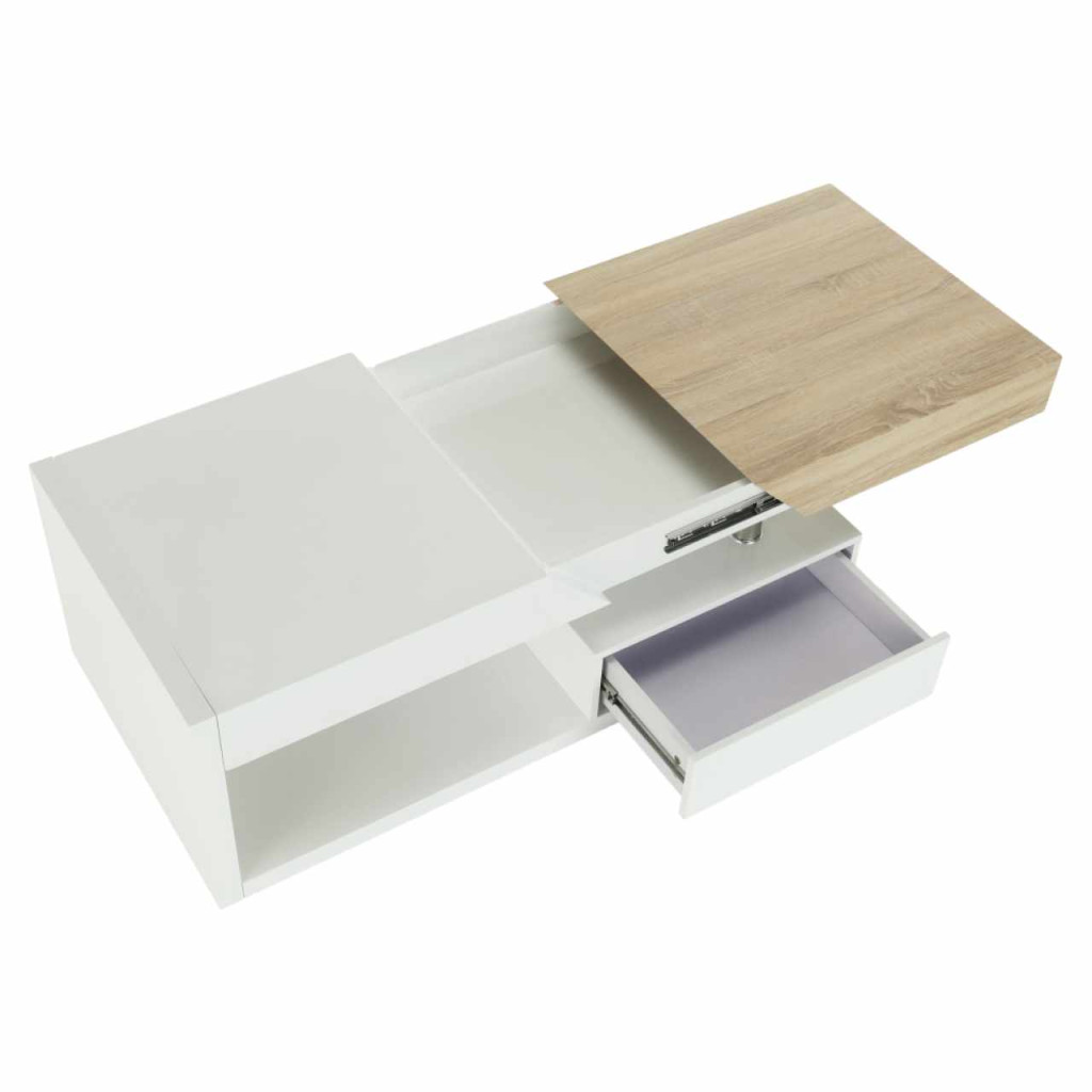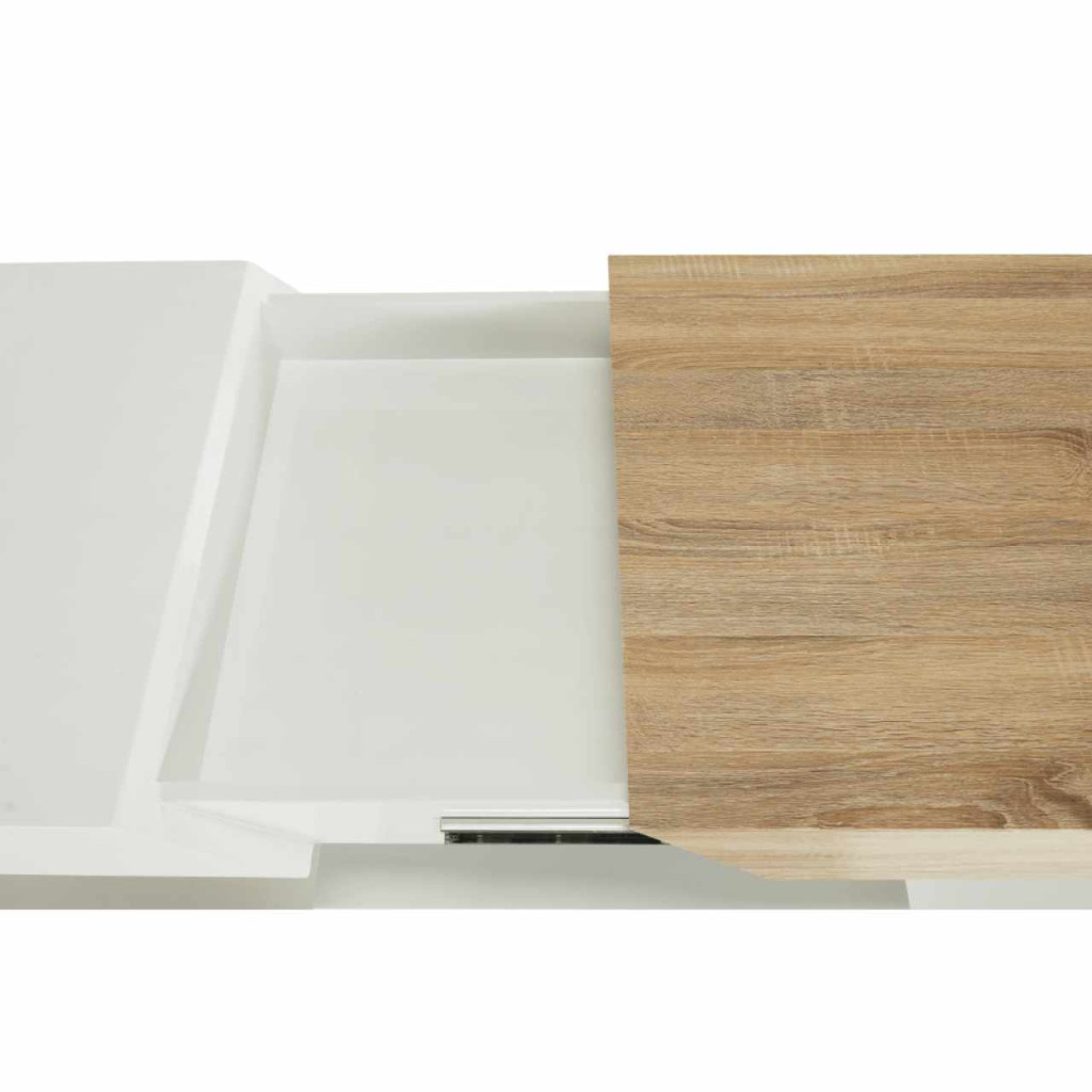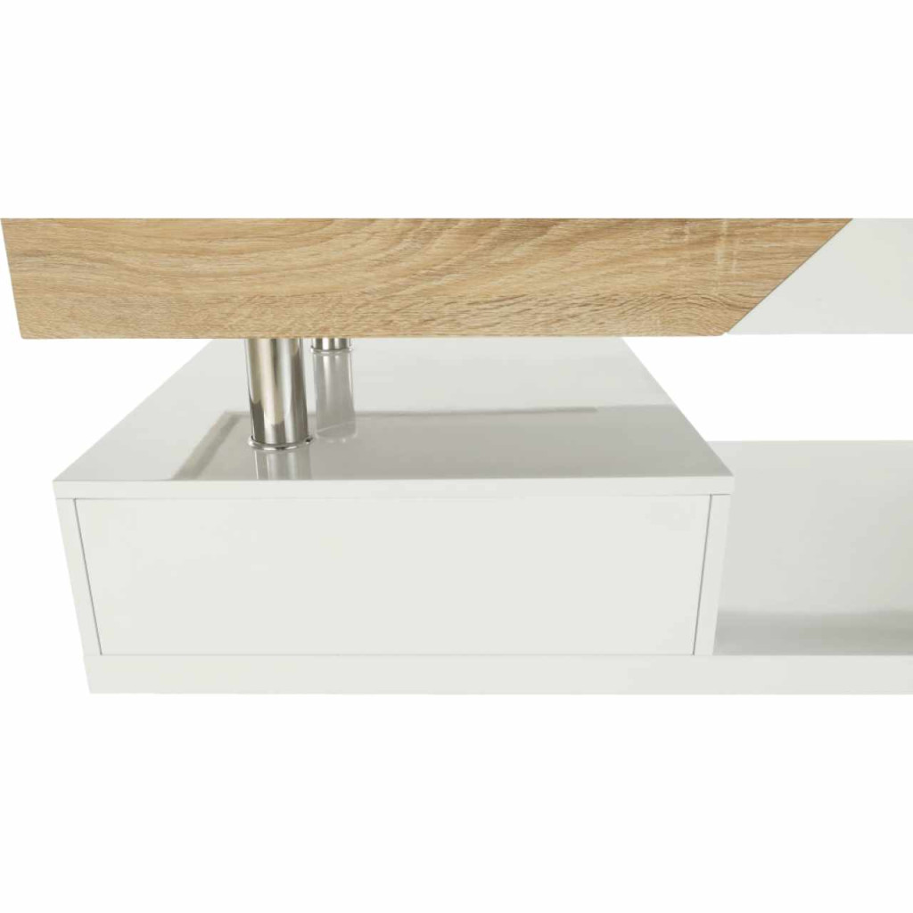 Dohányzóasztal MELIDA Színes kivitelben: magasfényű fehér / sonoma tölgy Anyag: MDF/fém Mérete (SzéxMéxMa): 120x60x43 cm Lapraszerelten szállítva