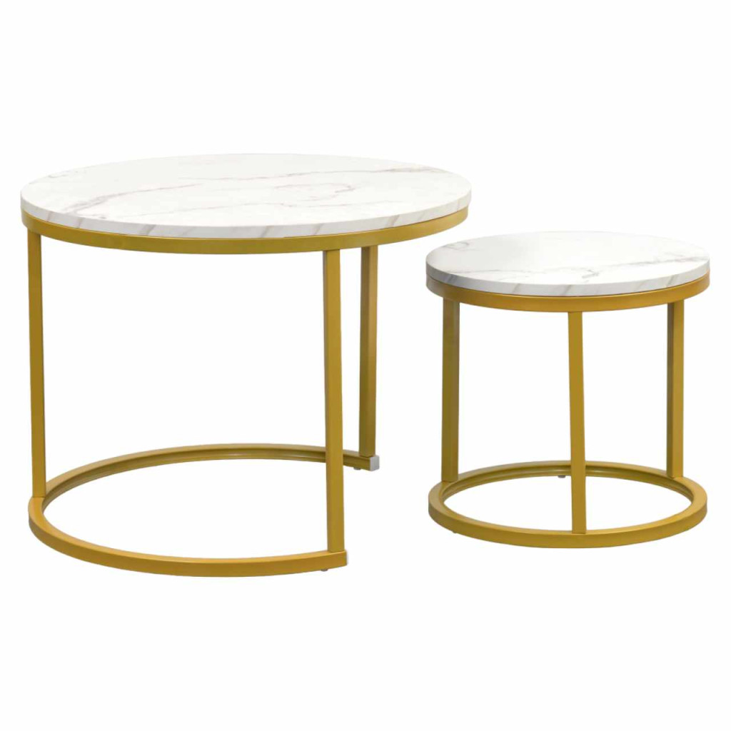 Dohányzóasztal, 2 db-os szett, arany/márvány imitáció, DAMON | Fehér | MDF