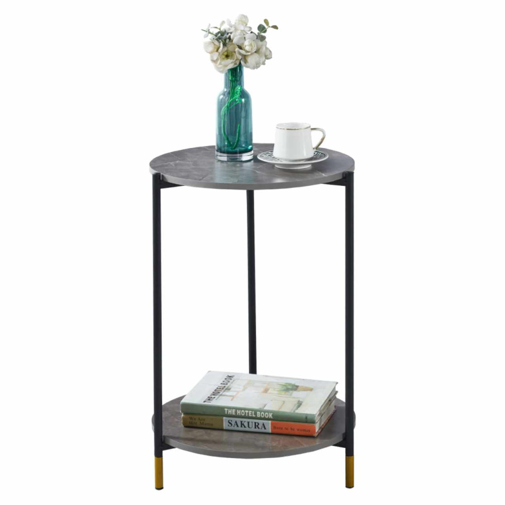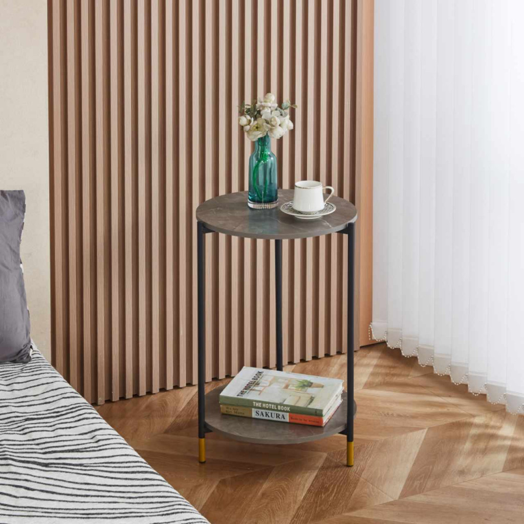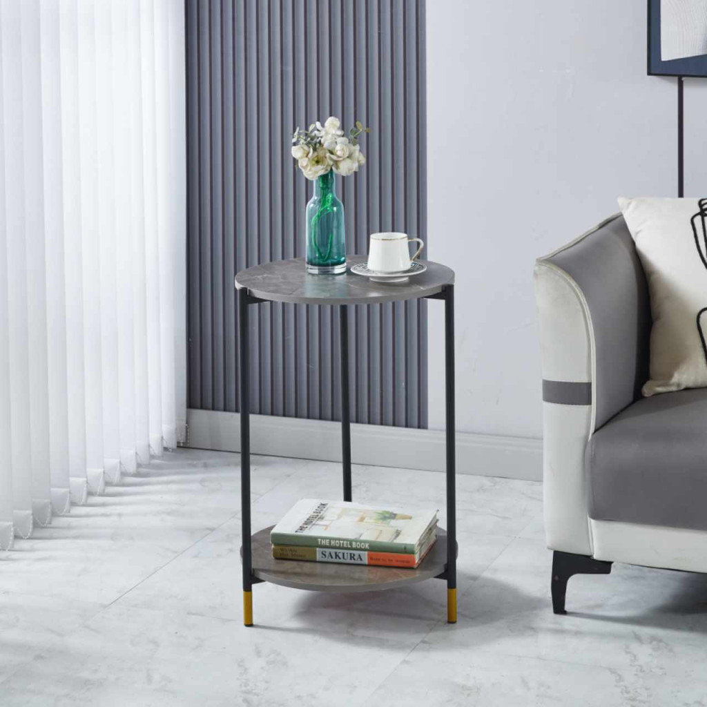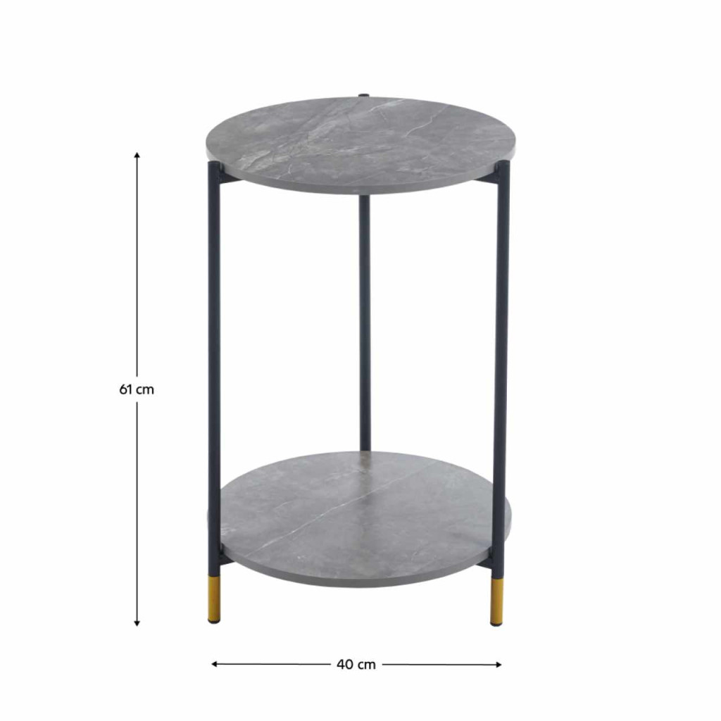 Anyag: fóliázott MDF/fémSzín: szürke mintás márvány/feketeMéretek (SzxMéxMa): 42x42x61 cmTeherbírás: 10 kgTeherbírás/polc: 7 kgSúly: 2,6 kgMDF anyag vastagsága: 1,2 cmModern kidolgozásDizájnosan szegélyezett lábakSzétszerelve szállítva