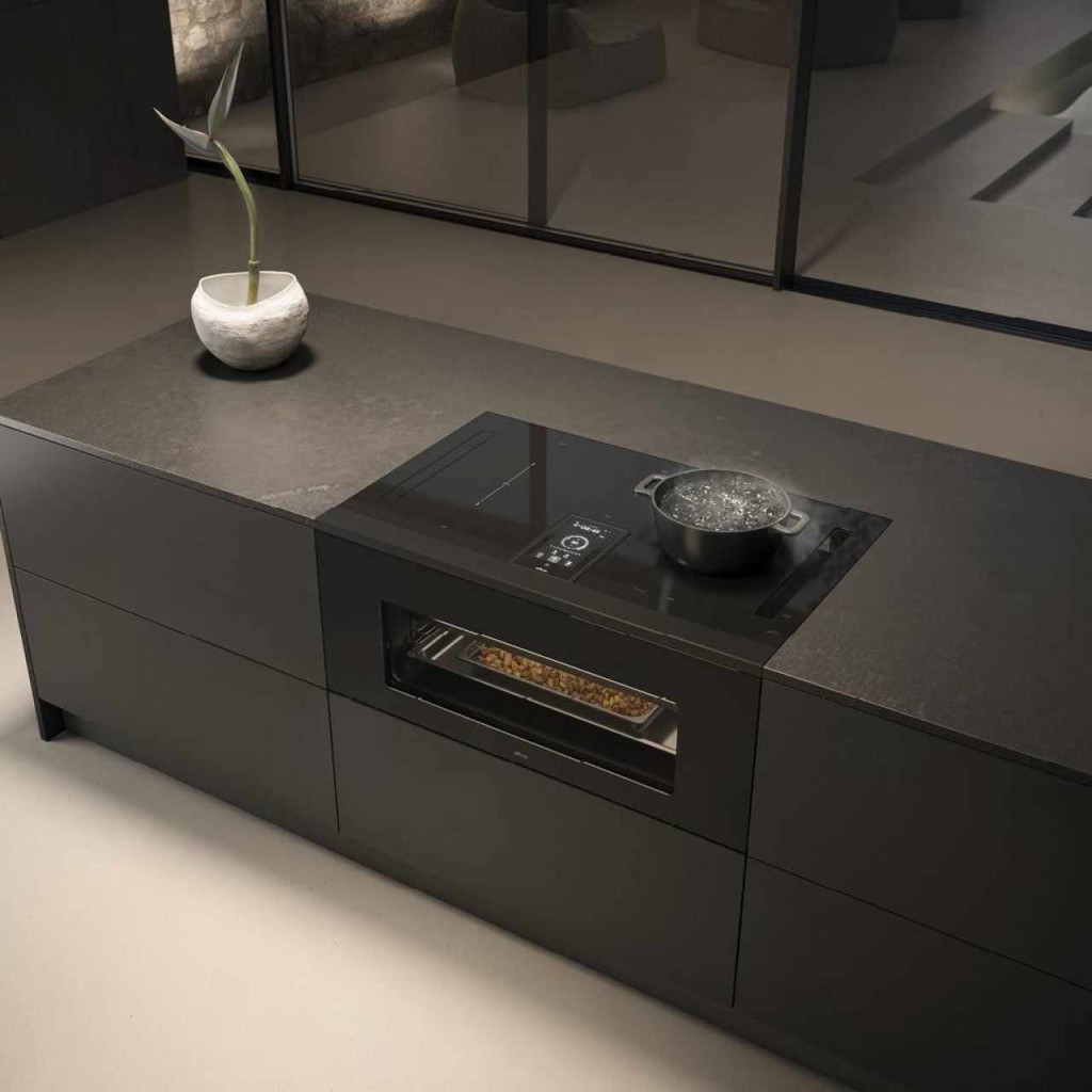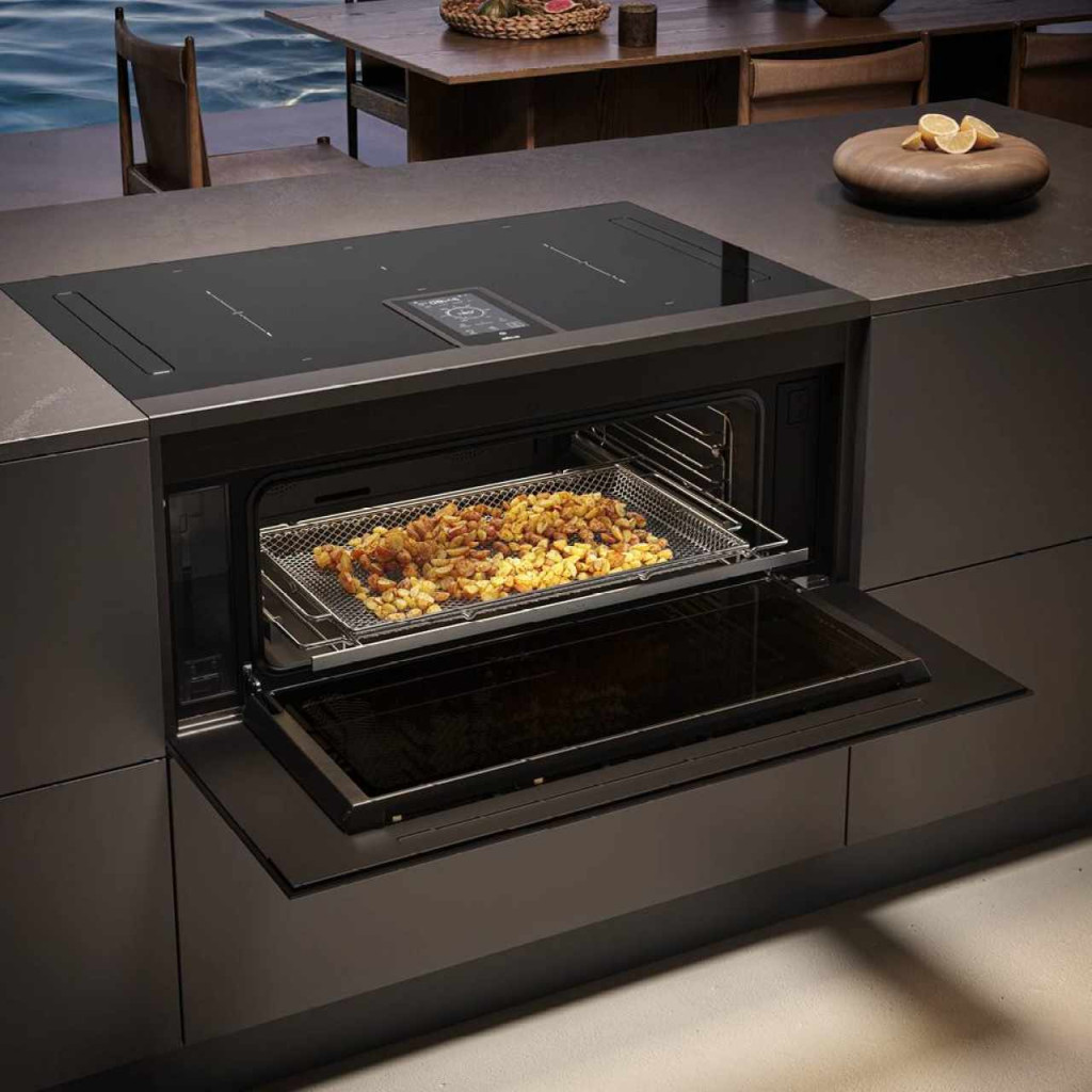 Az Lhov formatervezése megszegi a termékkategória szabályait azáltal, hogy első ízben egyesíti a főzőlapot, a sütőt és a páraelszívót egyetlen szabvány méretű készülékben (90x36 cm). Ez az egyedülálló funkció lehetővé teszi, hogy tökéletesen integrálja a készüléket a konyhabútorba, a lehető legjobban kihasználja a helyet, és tökéletesítse konyhai kialakítását. Mi a helyzet az esztétikai hatással? Kivételesnek mondható, különösen a figyelemreméltó vonalvezetésnek és folytonos fekete üvegfelületeinek köszönhetően teljesen mentes minden fogantyútól vagy gombtól.