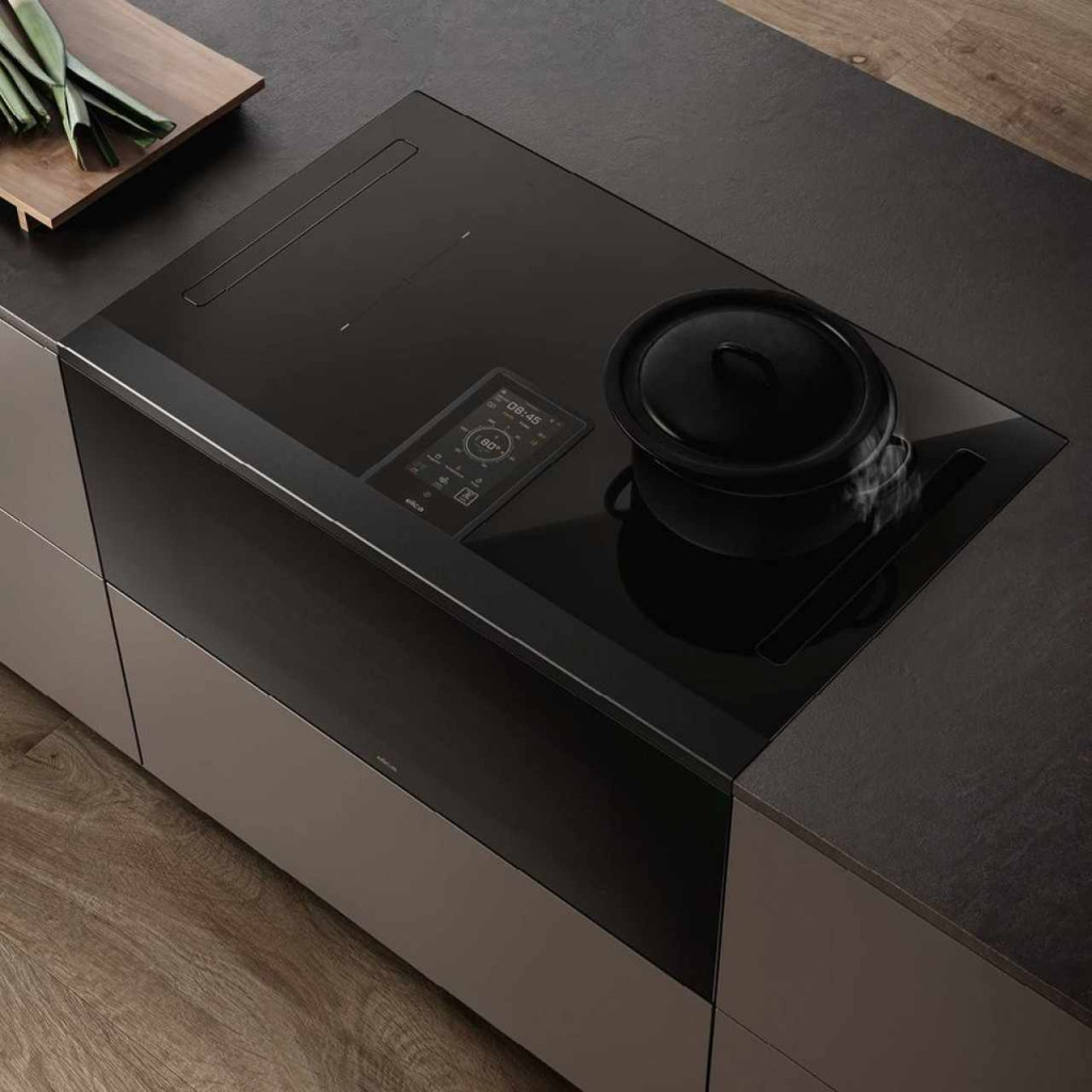 Nehéz lenne egy főzőlapként definiálni: a Lhov újradefiniálja az indukciós főzés szabványait. Soha nem fordult elő, hogy 5 főzőzóna legyen egy elszívóval integrált főzőlapon. Hogy nagy teljesitményűek, kombinálhatóak és még nagy edények mellett is a kiválóan főznek. Hogy olyan automata funkciókat kináljanak, melyeket a profi főzővilág inspirált: vajat és csokoládét olvaszthat anélkül, hogy leégne; lassú főzéshez vagy a már kész ételek melegen tartásához; ételeket forralhat bosszantó vízkifolyás nélkül. És hogy a különböző főzőzónákhoz különböző teljesítmények állíthatók be, lehetővé téve, hogy az edényt - például - élénk forralásról lassú főzésre vigye át. Hogyan lehetséges ez? Egyszerű: minden zóna az előre beállított teljesítményen aktiválódik, amikor edény jelenlétét érzékeli. Vagyis nem csak egy egyszerű főzőlap.