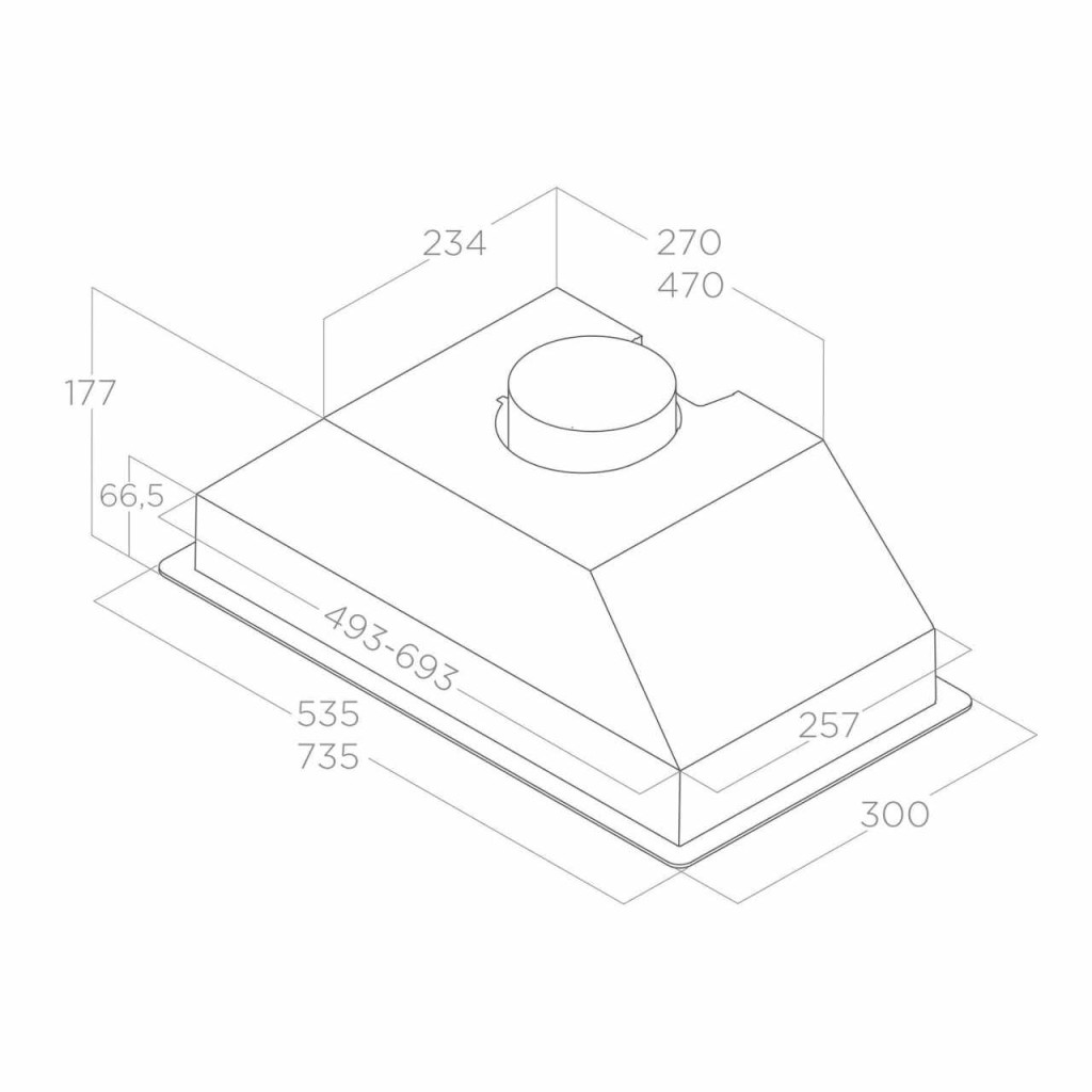 - Forma, kivitel: Felső szekrénybe vagy kürtőbe építhető